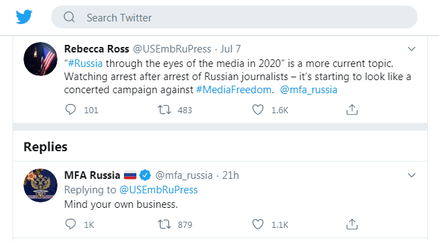 რუსეთის საგარეო სამინისტრო აშშ-ს საელჩოს - შენს საქმეს მიხედე