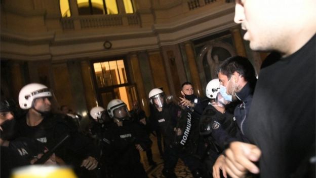 ბელგრადში საპროტესტო აქცია პოლიციასთან დაპირისპირებაში გადაიზარდა