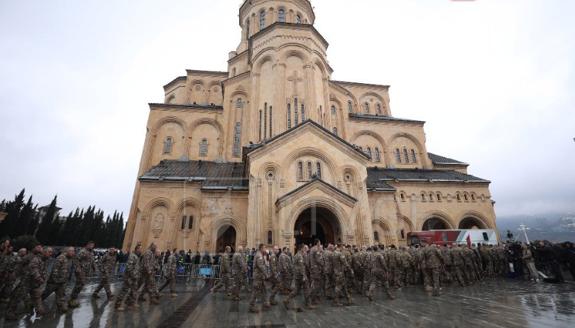 ილია მეორისთვის პატივის მისაგებად სამების ტაძარში სამხედრო მოსამსახურეები მივიდნენ