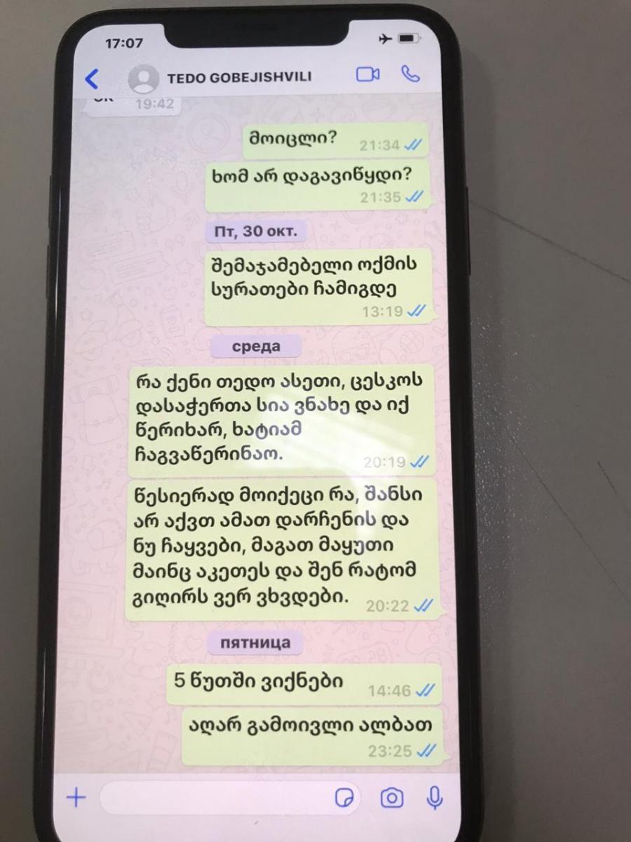 საქართველოს პროკურატურა მაღალი საჯარო ინტერესის გათვალისწინებით, ისნის N5 საოლქო-საარჩევნო კომისიის თავმჯდომარის თ.გ.-ს მიმართ ჯგუფურად განხორციელებული იძულების, მუქარისა და ქრთამის მიცემის ფაქტზე, მიმდინარე სისხლის სამართლის საქმეზე მოპოვებული მტკიცებულებების ნაწილს ასაჯაროებს. უწყების განცხადებით, საქმეზე გამოძიება დასრულდა და სისხლის სამართლის საქმე არსებითად განსახილველად სასამართლოში წარიმართა. „აღსანიშნავია, რომ სხვადასხვა მედიასაშუალებებით გავრცელებული ინფორმაცია, თითქოსდა აღნიშნულ სისხლის სამართლის საქმეში, ბრალდებულების ა.ხ.-ს და ა.კ.-ს მიმართ არ არსებობს სათანადო მტკიცებულებები, წარმოადგენს საზოგადოების შეცდომაში შეყვანის მცდელობას. აღნიშნულიდან და საქმისადმი საზოგადოების მაღალი ინტერესიდან გამომდინარე, პროკურატურამ მიიღო გადაწყვეტილება გაასაჯაროოს სისხლის სამართლის საქმეზე მოპოვებული მტკიცებულებების ნაწილი. როგორც საზოგადოებისთვის ცნობილია, შინაგან საქმეთა სამინისტროს მიერ ჩატარებული გამოძიებით დადგინდა, რომ 2020 წლის 6 ნოემბერს, ქ.თბილისში, ა.ხ. და ა.კ. შეხვდნენ ქ.თბილისის ისნის N5 საოლქო-საარჩევნო კომისიის თავმჯდომარე თ.გ.-ს და პოლიტიკური პარტია „ერთიანი ნაციონალური მოძრაობის" სახელით, ქრთამის სახით 50 000 აშშ დოლარის გადახდის სანაცვლოდ, მედიის თანდასწრებით განცხადების გაკეთება შესთავაზეს, თითქოსდა არჩევნები გაყალბდა, რის შემდეგაც მას დემონსტრაციულად უნდა დაეტოვებინა თანამდებობა. ბრალდებულები ისნის კომისიის თავმჯდომარეს უარის მიღების შემთხვევაში, ხელისუფლების შეცვლის შემდეგ დაპატიმრებით და მისი და ოჯახის წევრების ფიზიკური ანგარიშსწორებით დაემუქრნენ. ასევე, ა.კ.-მ მართლსაწინააღმდეგოდ შეიძინა და 2020 წლის 7 ნოემბრის ჩათვლით საკუთარ საცხოვრებელ ბინაში ინახავდა საბრძოლო მასალას, რომელიც მისი საცხოვრებელი ბინის ჩხრეკის შედეგად იქნა ამოღებული. პროკურატურამ ა.კ.-ს ბრალდება საქართველოს სისხლის სამართლის კოდექსის 339-ე მუხლის 1 ნაწილით, 150-ე მუხლის მე-2 ნაწილის „ბ" ქვეპუნქტით, 151-ე მუხლის მე-2 ნაწილის „ა" ქვეპუნქტით და 236-ე მუხლის მე-3 ნაწილით, ხოლო ა.ხ.-ს საქართველოს სისხლის სამართლის კოდექსის 339-ე მუხლის 1 ნაწილით, 150-ე მუხლის მე-2 ნაწილის „ბ" ქვეპუნქტით, 151-ე მუხლის მე-2 ნაწილის „ა" ქვეპუნქტით 2020 წლის 9 ნოემბერს წარუდგინა, ორივე ბრალდებულს აღკვეთის ღონისძიების სახით შეფარდებული აქვთ პატიმრობა. გამოძიების ფარგლებში სისხლის სამართლის საქმეზე ჩატარდა სხვადასხვა საგამოძიებო და საპროცესო მოქმედებები, მოპოვებული