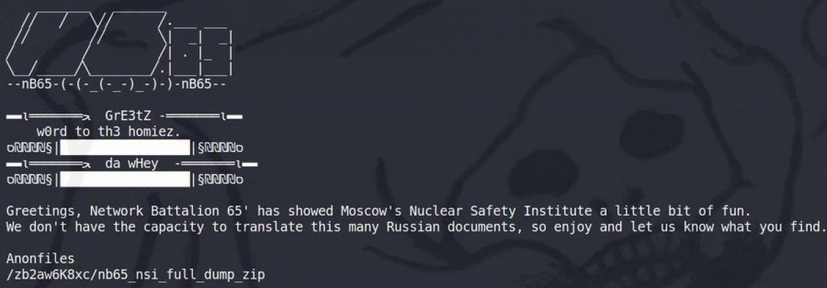მსოფლიოს უდიდესმა ჰაკერების გაერთიანებამ, Anonymous-მა მოპოვა რუსეთის ბირთვული უსაფრთხოების ინსტიტუტის მონაცემთა ბაზაზე წვდომა და 40 000 ფაილი გაავრცელა. ანონიმუსის 65-ე ბატალიონი ტვიტერზე წერს, რომ მათ არ გააჩნიათ ამ რაოდენობის მასალის თარგმნისათვის საჭირო რესურსები და თარჯიმნის დახმარებას ითხოვენ.