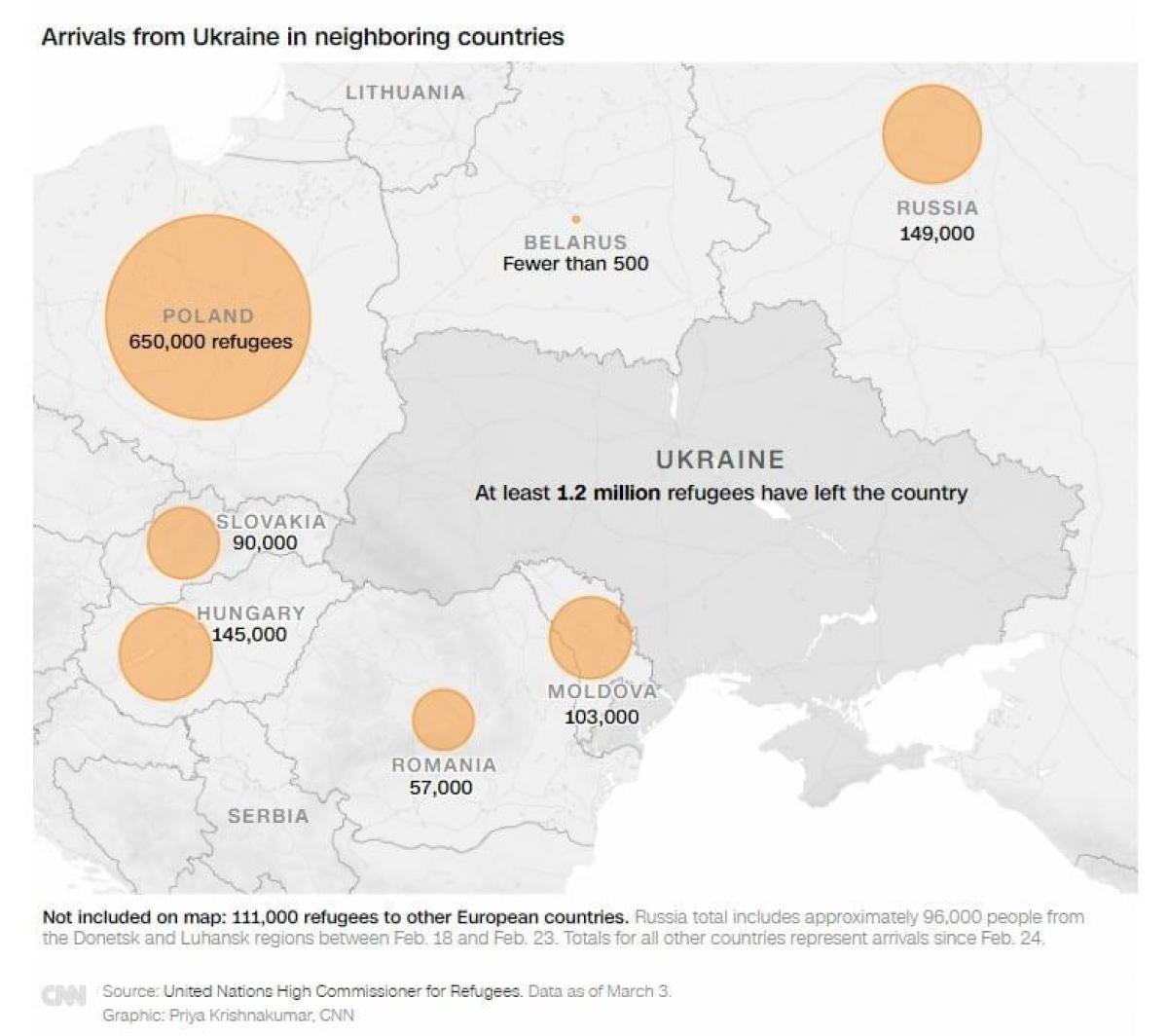 ბოლო მონაცემებით, 1 209 976 ლტოლვილიდან 650 ათასი პოლონეთში გადავიდა. სიაში ასევე არიან სლოვაკეთი, უნგრეთი, რუმინეთი, მოლდოვა და რუსეთი.