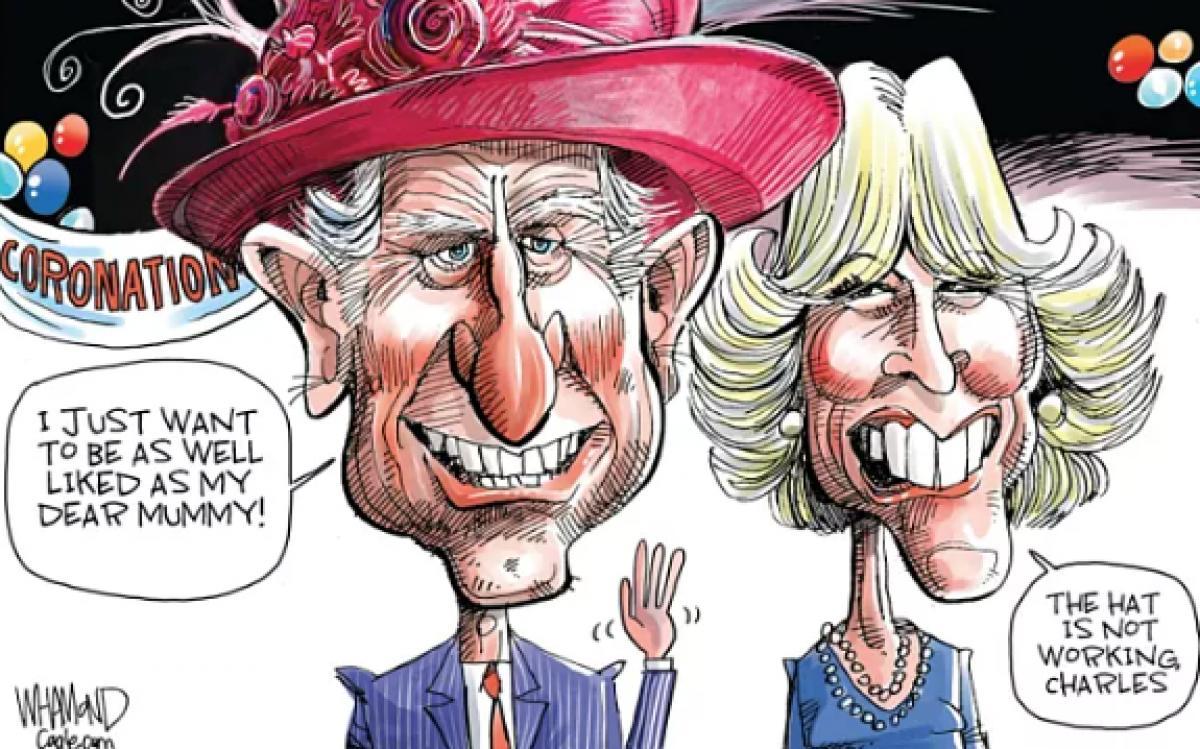 კარიკატურისტი დეივ უაიმონდი, რომლის ნამუშევარი გამოქვეყნებულია Reader's Digest-ში, Wall Street Journal-სა და Sports Illustrated-ში, როგორც ჩანს, თავისი კარიკატურით ამბობს, რომ ელიზაბეტ II-ის მეფობის შემდეგ მონარქიის იმიჯის „გაახალგაზრდავება“ არც ისე ადვილი იქნება.