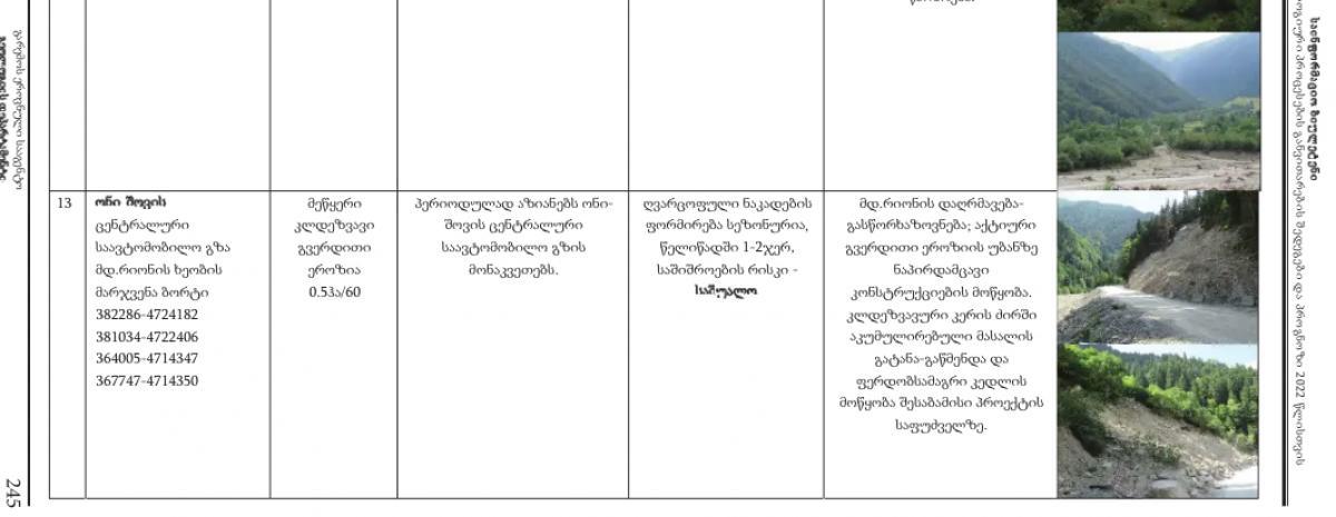 ერთი რამ მინდა გითხრათ, რომ ასეთი კატაკლიზმები, ტრაგედიები, სტიქიები ხდება ყველა ქვეყანაში და ყოველგვარი საუბარი იმაზე, რომ ამის არიდება შეიძლებოდა, მგონი ძალიან არასერიოზულია, - ამის შესახებ საქართველოს პრემიერ-მინისტრმა, ირაკლი ღარიბაშვილმა ჟურნალისტებს რაჭაში განუცხადა, სადაც სტიქიის ზონაში არსებულ ვითარებას ადგილზე გაეცნო. ისმება კითხვა იყო თუ არა შესაძლებელი სტიქიის პროგნოზირება. გარემოს ეროვნული სააგენტო საინფორმაციო გეოლოგიური ბიულეტინს ამზადებს, სადაც, სტიქიური გეოლოგიური პროცესების განვითარების შედეგებს და პროგნოზებს მეცნიერულად ასაბუთებს. გარემოს ეროვნული სააგენტოს წარმომადგენლებმა საინფორმაციო გეოლოგიური ბიულეტენი „საქართველოში 2022 წელს სტიქიური გეოლოგიური პროცესების განვითარების შედეგები და პროგნოზი 2023 წლისთვის“ ცხრა სამხარეო ადმინისტრაციულ ერთეულში წარადგინეს. თუმცა დოკუმენტი საჯაროდ არ გამოუქვეყნებიათ. სააგენტოს გეოლოგიის დეპარტამენტის სპეციალისტების მიერ მომზადებული საინფორმაციო ბიულეტენი ქვეყნის მასშტაბით გეოლოგიური მონიტორინგის და სტიქიის ექსტრემალური გააქტიურების პერიოდში ჩატარებული კვლევების შედეგად დამუშავებულ გეოლოგიური საფრთხეების (მეწყერი, ღვარცოფი, კლდეზვავი, ქვათაცვენა და სხვა) შესახებ ინფორმაციას მოიცავს. ბიულეტენს, ასევე, ახლავს გეოლოგიური საფრთხეების სპეციალიზირებული რუკები საქართველოს ცალკეული მხარეებისა და მუნიციპალიტეტების მიხედვით. სააგენტოს სპეციალისტების მიერ მომზადებული საინფორმაციო გეოლოგიური ბიულეტენი გადაეგზავნა შესაბამის სახელმწიფო უწყებებსა და ორგანიზაციებს, ასევე, სამხარეო ადმინისტრაციებს და მუნიციპალიტეტების ხელმძღვანელებს. დღემდე არ ვიცით რა წერია, აღნიშნულ ბიულეტინში და რა პროგნოზები გაკეთდა 2023 წლისთვის. თუმცა ვიცით რა პროგნოზები იყო გაკეთებული 2022 წლისთვის. არასამთავრობო ორგანიზაცია "მწვანე ალტერნატივამ" გარემოს ეროვნული სააგენტოს უჩივლა და აიძულა 2022 წლის გეოლოგიური პროგნოზი გამექვეყნებინა. გარემოს ეროვნული სააგენტოს მიერ 2023 წლის 22 თებერვლის გადმოცემული საჯარო ინფორმაცია. ბიულეტინში ხაზგასმითაა გაწერილი რომ ონის მუნიციპალიტეტში ვითარება საშიშია. გეოლოგებმა და სხვა სპეციალისტებმა მუნიციპელიტეტებს და მთავრობას ურჩიეს, რომ სოფელ ღების ტერიტორიაზე, ასევე მიმდეგაბრე ტერიტორიაზე მდინარეების რიონის, ლათქიშორას და ჩვეშურას კალაპოტების ფორმირება და ნაპირგამაგრებითი სამუშაოების დაწყება. გეოლოგიურ დასკვნასა და პროგნოზში წერ