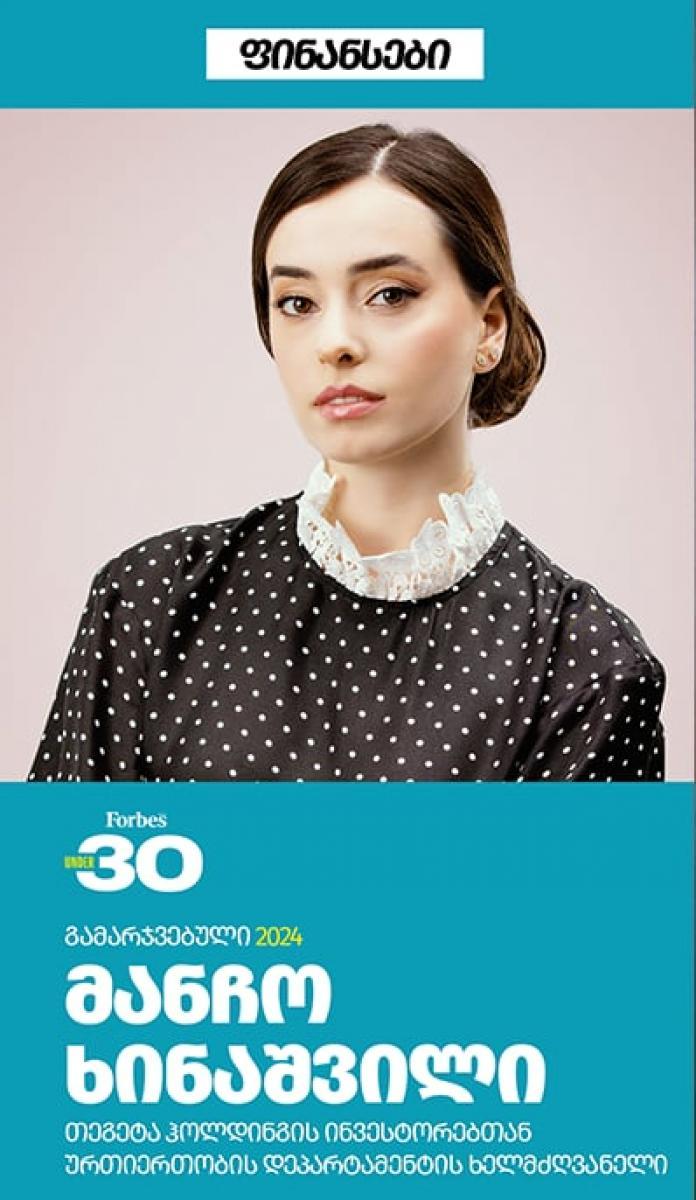 „თეგეტა ჰოლდინგის“ თანამშრომლები, მანანა ხინაშვილი და ლევან მამულაშვილი - Forbes 30 UNDER 30-ის გამარჯვებულები არიან. უკვე მეექვსე წელია, Forbes Georgia-ს პროექტი 30 UNDER 30 იმ ახალგაზრდა ლიდერებს აჯილდოებს, რომლებიც თავიანთი ცოდნით, ძალისხმევითა და ენთუზიაზმით სხვადასხვა სფეროში წარმატებას აღწევენ და ჩვენი ქვეყნის მომავალს ქმნიან. „30-წლამდელთა სიის“ ახალგაზრდა ლიდერები თავიანთი საქმიანობით ამტკიცებენ, რომ მათი ენერგია, ხედვა და მიზანდასახულობა პროგრესის საფუძველია. Forbes Georgia-ს „30-წლამდელთა სია 2024“ გამორჩეული აღმოჩნდა „თეგეტა ჰოლდინგისთვის“. კატეგორიაში: „ტექნოლოგიები და ელკომერცია“ თეგეტას ტექნოლოგიების მიმართულების მთავარმა ოფიცერმა ლევან მამულაშვილმა გაიმარჯვა, ხოლო ჰოლდინგის ინვესტორებთან ურთიერთობის დეპარტამენტის ხელმძღვანელმა მანანა ხინაშვილმა 30 UNDER 30-ის ორ კატეგორიაში მოიპოვა აღიარება: ის ფინანსების სფეროში გამარჯვებული და „ფორბსის“ რჩეულის სტატუსის მფლობელი გახდა. ბაკალავრიატი - ფინანსების ინგლისურენოვანი პროგრამა - მანანას შავი ზღვის საერთაშორისო უნივერსიტეტში აქვს დამთავრებული. მაგისტრატურა თავისუფალ უნივერსიტეტში გაიარა ოპერაციების მართვის მიმართულებით. მისი პირველი სამუშაო ადგილი ბიზნესსაკონსულტაციო კომპანია იყო, სადაც ჯერ ისევ სტუდენტმა კვლევების ანალიტიკა ჩაიბარა. სწავლის დამთავრების შემდეგ საჯარო სამსახურში გადაინაცვლა - იუსტიციის სამინისტროს სსიპში სამი წლის განმავლობაში იმუშავა ბიუჯეტირების და ფინანსური ანალიზის მენეჯერის პოზიციაზე. მოგვიანებით ისევ კერძო სექტორს დაუბრუნდა - 2019 წელს თიბისი ლიზინგში დაიწყო მუშაობა ფინანსური რისკების მართვის, ინვესტორებთან ურთიერთობისა და სახაზინო ურთიერთობების მენეჯერის პოზიციაზე.