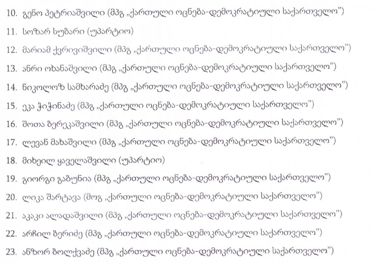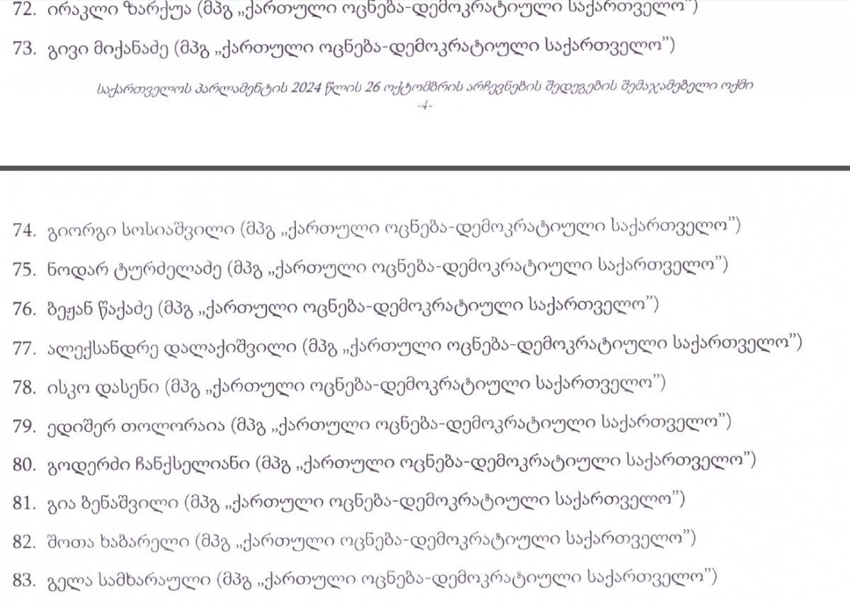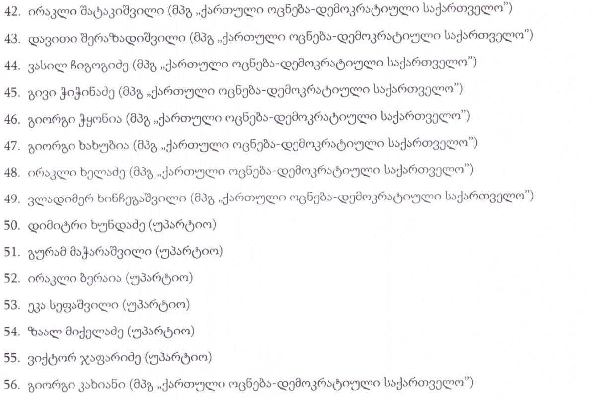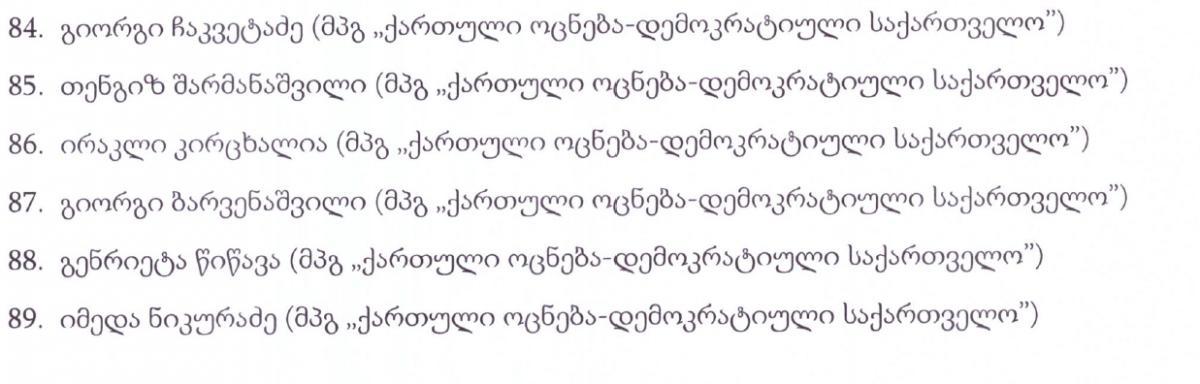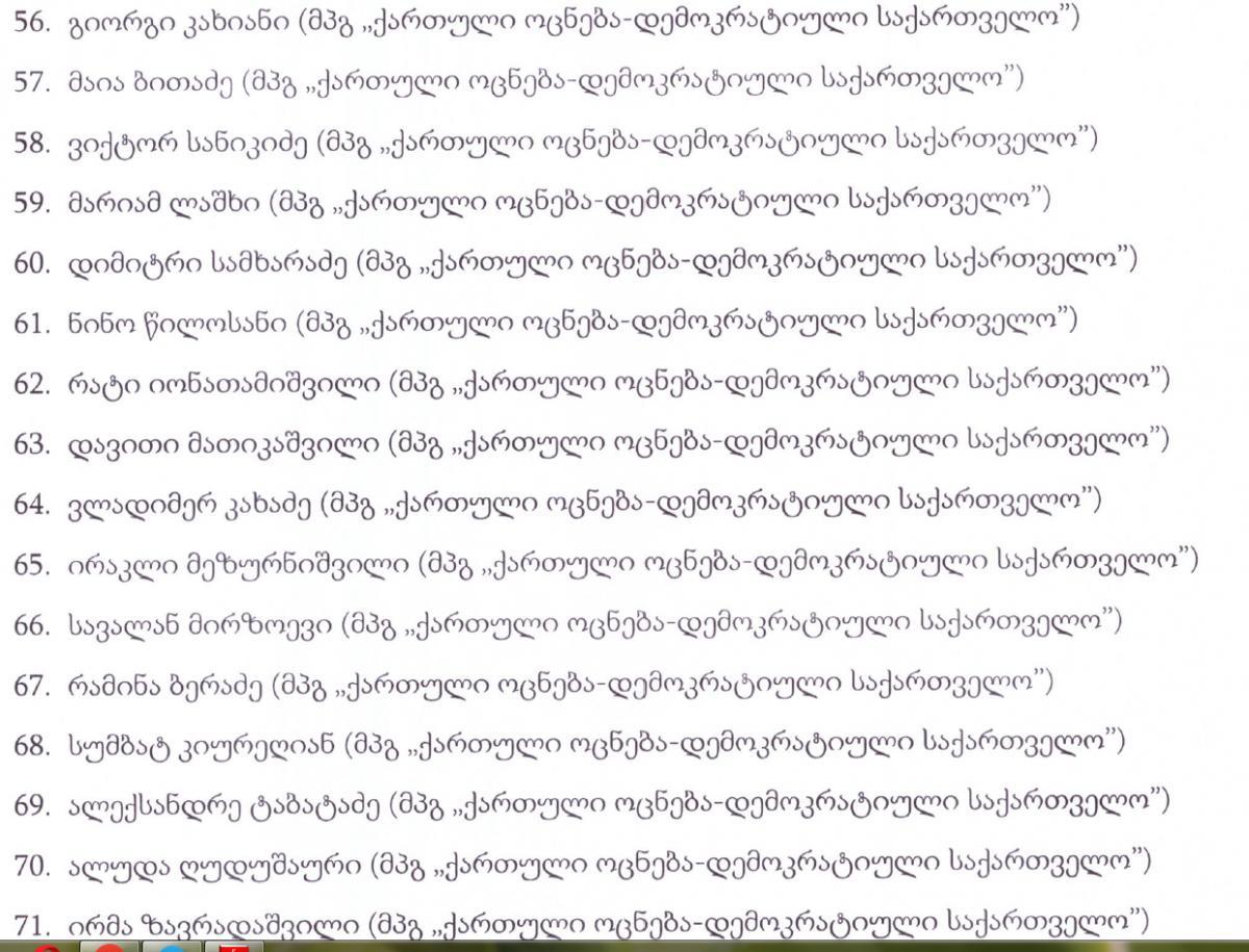 "ექსპრესნიუსი" გთავაზობთ დეპუტატების სიას ვინც მმართველი პარტიის სახელით დეპუტატად იქნა არჩეული..