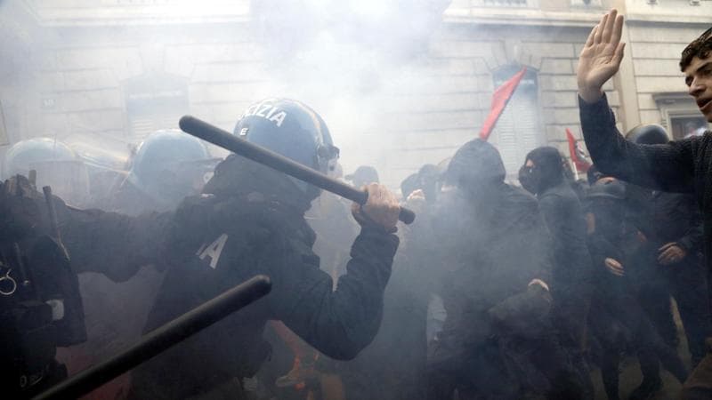 მილანში ულტრამემარჯვენეების წინააღმდეგ გამართული საპროტესტო აქციის დროს არეულობა დაიწყო - ვიდეო