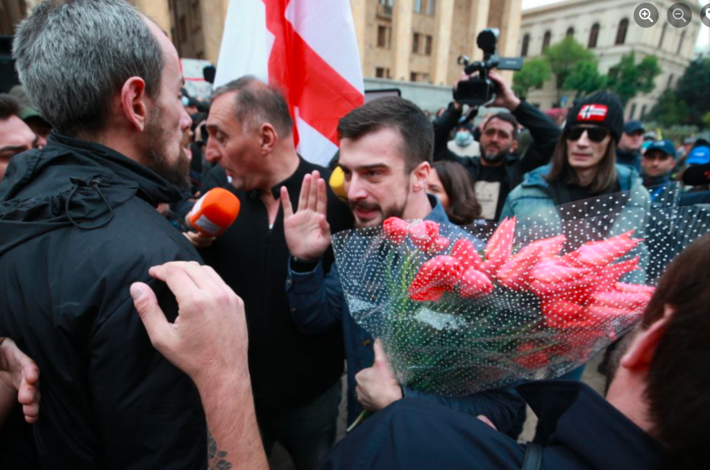 პარლამენტთან აქციის მონაწილეებსა და ადგილზე მისულ პირებს შორის დაპირისპირებაა