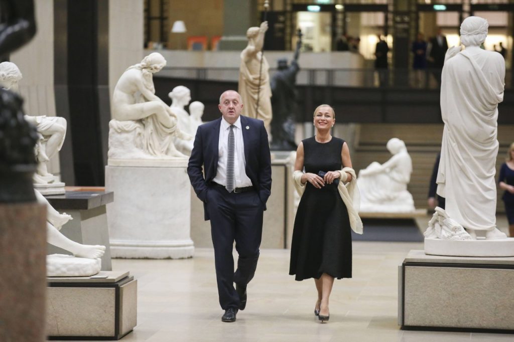 პრეზიდენტი და პირველი ლედი ემანუელ მაკრონის სახელით გამართულ ოფიციალურ ვახშამს დაესწრნენ
