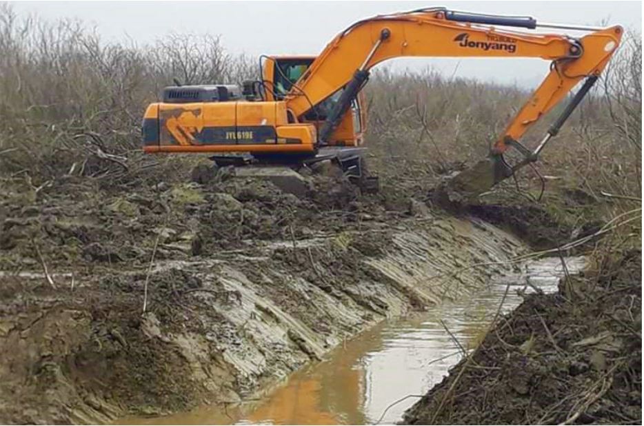 სენაკის მუნიციპალიტეტში, 4 კილომეტრი სიგრძის სადრენაჟე არხებზე გაწმენდითი სამუშაოები მიმდინარეობს