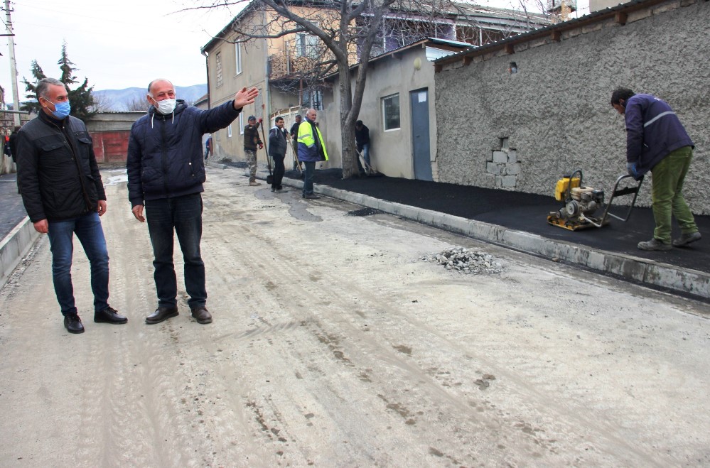 კასპში ჯორჯიაშვილის ქუჩაზე, ასფალტის პირველი ფენის დაგების სამუშაოები მიმდინარეობს