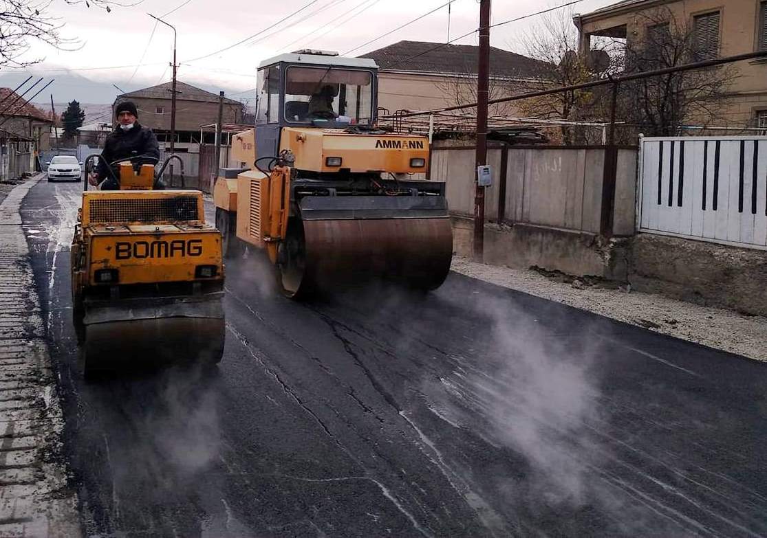 კასპში გაბაშვილის ქუჩაზე ასფალტის მეორე პირის დაგების სამუშაოები მიმდინარეობს