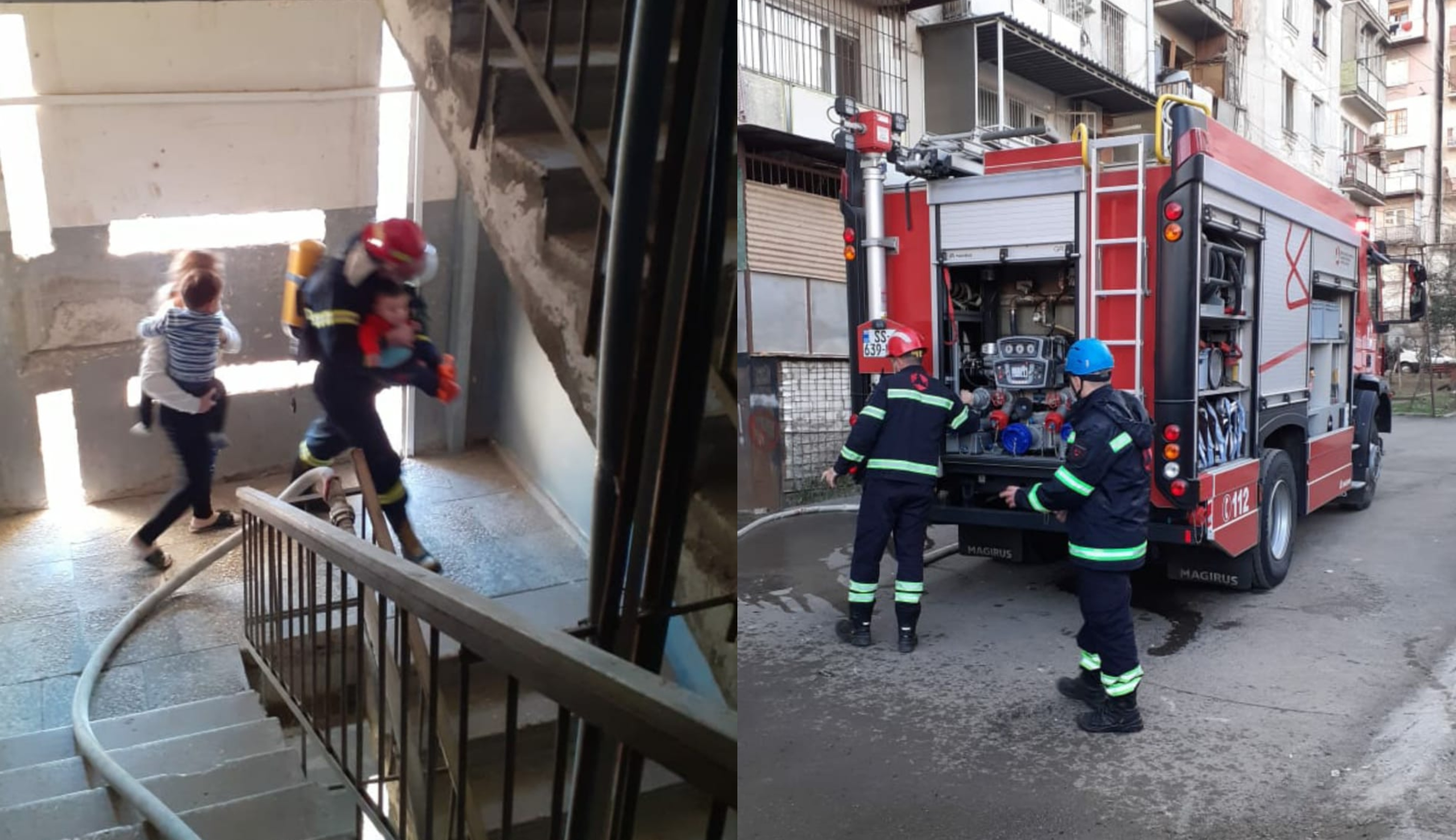 რუსთავში, ცეცხლმოკიდებული კორპუსიდან, მეხანძრე-მაშველებმა ბავშვები გამოიყვანეს