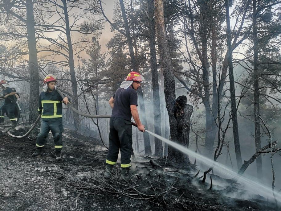 სოფელ საყავრესთან, სადაც ტყის ხანძრის ქრობის პროცესი მიმდინარეობს, საველე შტაბი ეწყობა