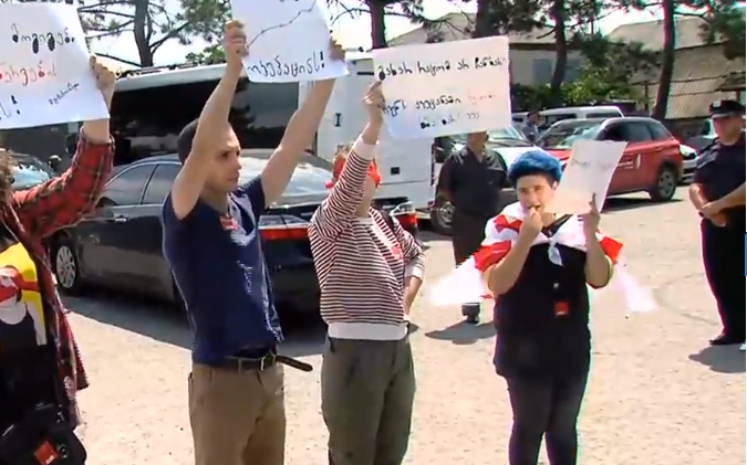 გოგებაშვილის სახლ-მუზემთან, სადაც პრემიერი და მთავრობის წევრები იმყოფებოდნენ, საპროტესტო აქცია გაიმართა