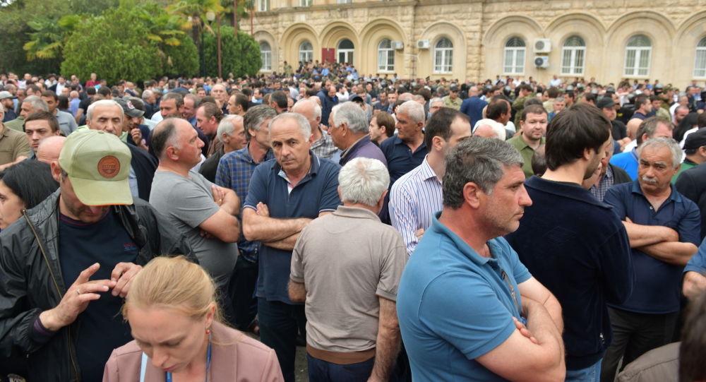 აქცია ოკუპირებულ აფხაზეთში - ოპოზიცია ე.წ. საპრეზიდენტო არჩევნების გადადებას ითხოვს