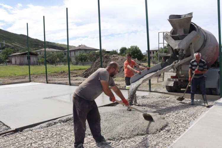 კასპში, სვანების დასახლებაში ბეტონზე ხელოვნურ საფარიანი სპორტული მოედნის მოწყობის სამუშაოები მიმდინარეობს