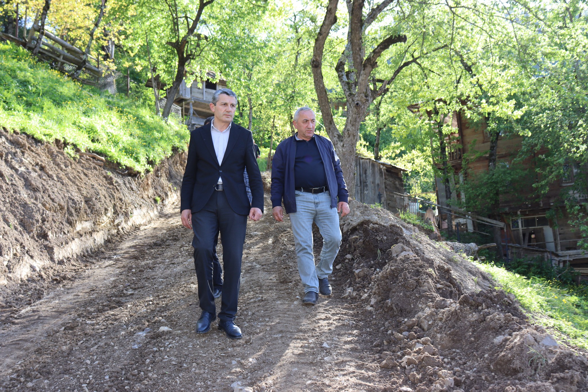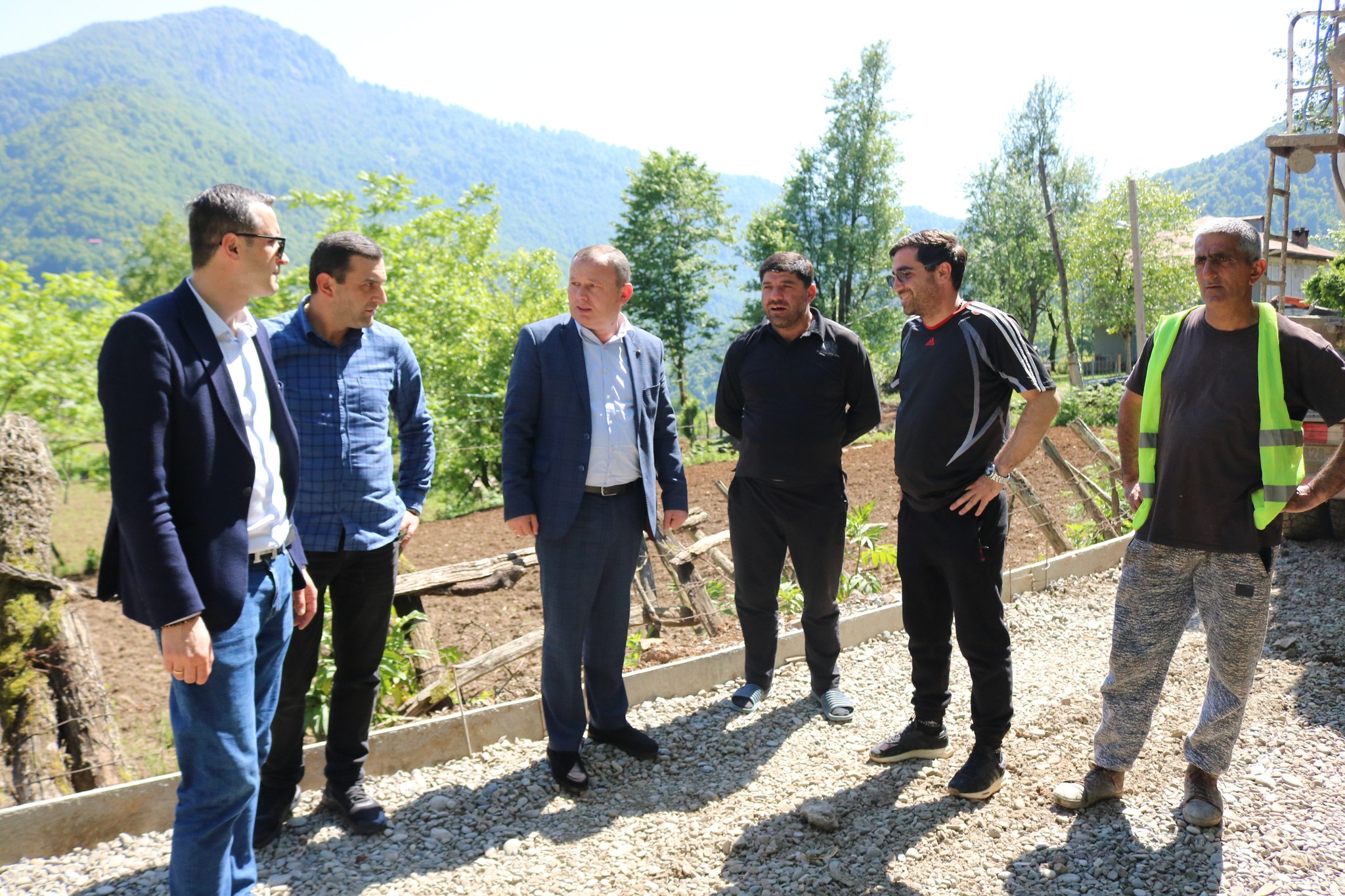 ქედის მერი როლანდ ბერიძე სოფელ პირველ მაისში საავტომობილო გზის სამშენებლო სამუშაოებს გაეცნო