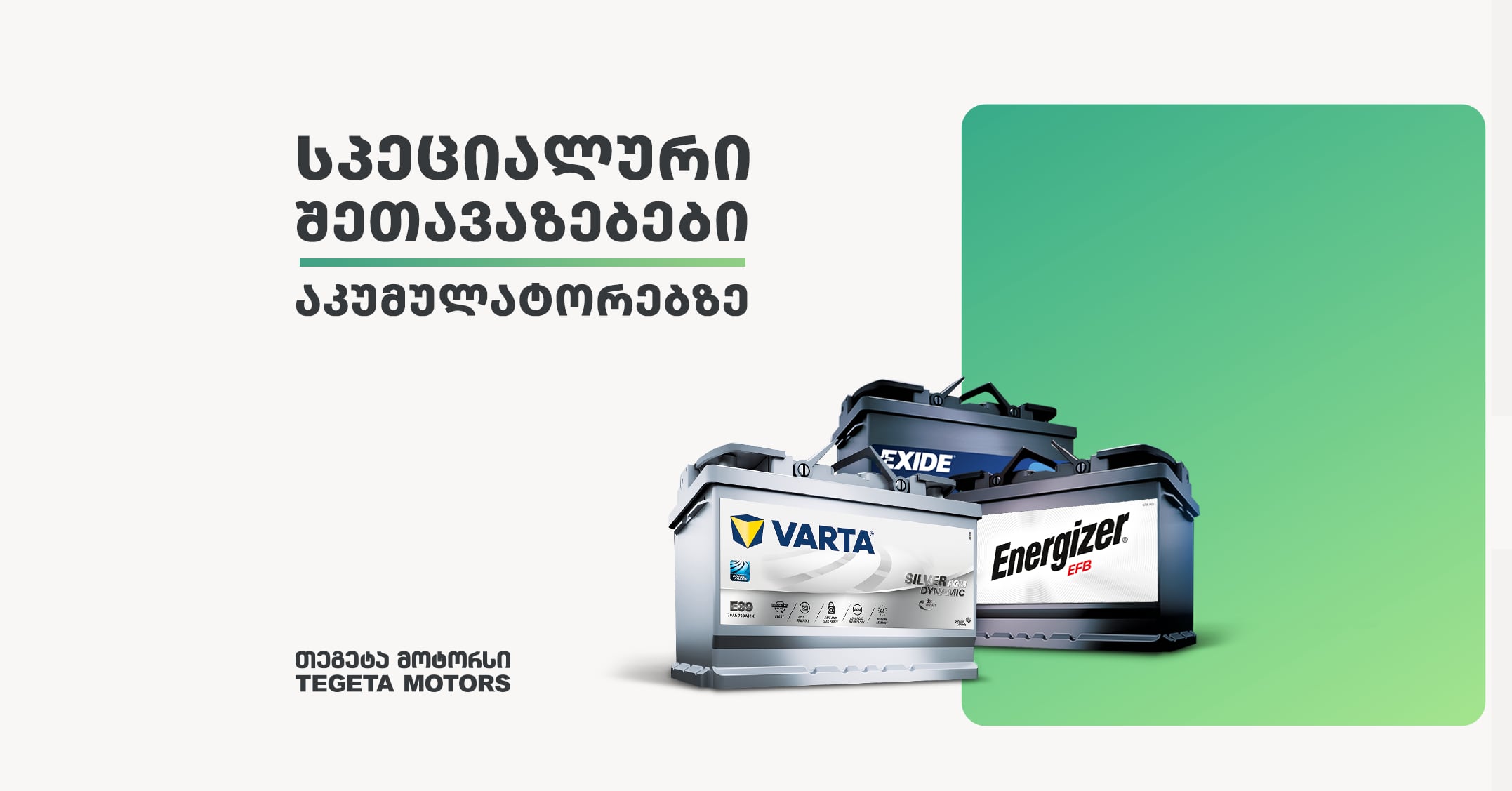 „თეგეტა მოტორსის“ სპეციალური შეთავაზება VARTA-ს, EXIDE-ისა და ENERGIZER-ის აკუმულატორებზე