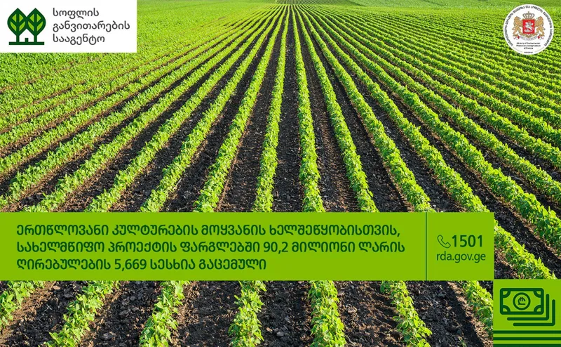 ერთწლოვანი კულტურების მოყვანის ხელშეწყობისთვის, სახელმწიფო პროექტის ფარგლებში, 90,2 მილიონი ლარის სესხია გაცემული