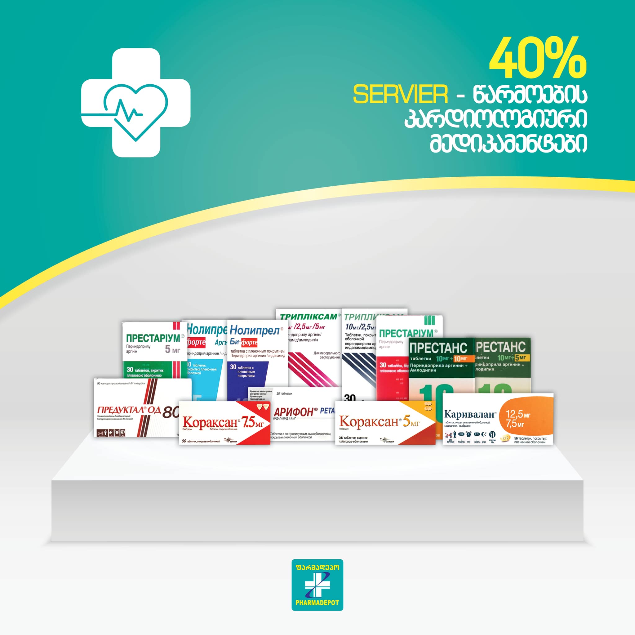 „ფარმადეპოს“ SERVIER-წარმოების კარდილოგიურ მედიკამენტებზე, 40%-იანი ფასდაკლება აქვს