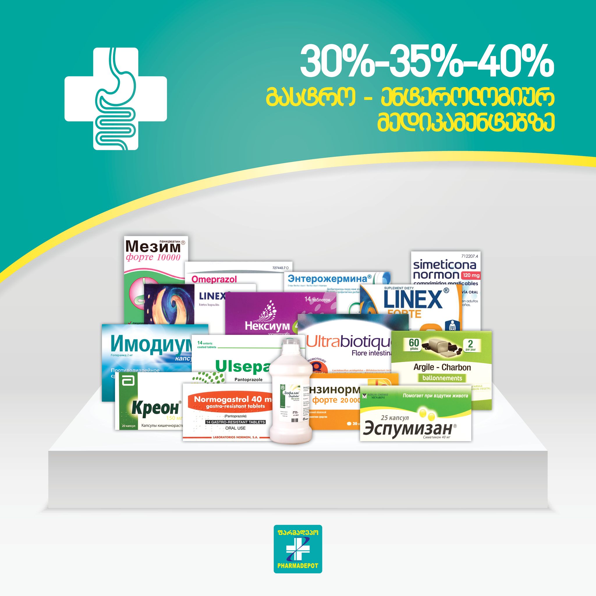 გასტრო-ენტეროლოგიური მედიკამენტები ფასდაკლებით ფარმადეპოში