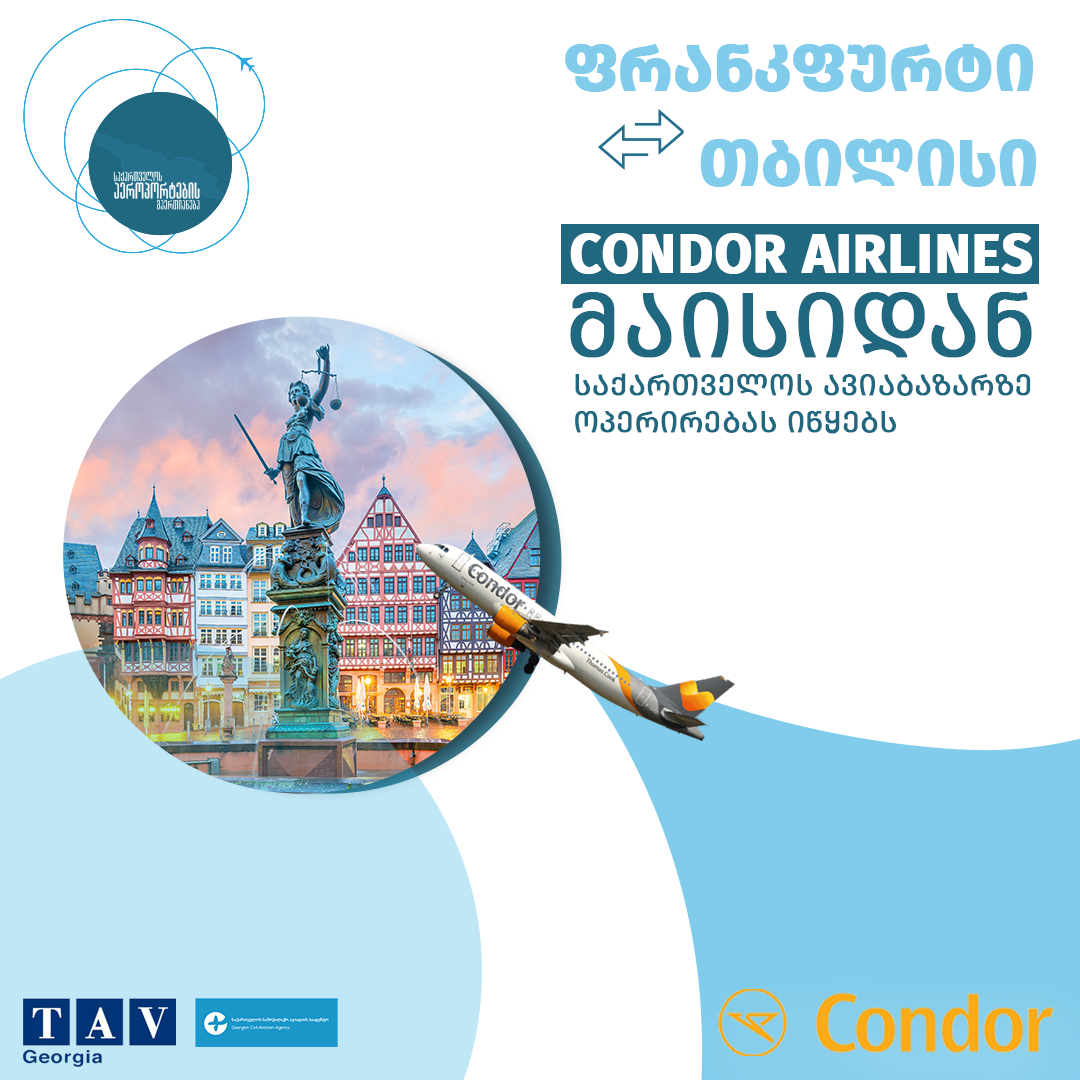 ახალი ავიაკომპანია თბილისის საერთაშორისო აეროპორტში - Condor Airlines ფრანკფურტი - თბილისი მიმართულებით ფრენების ოპერირებას იწყებს