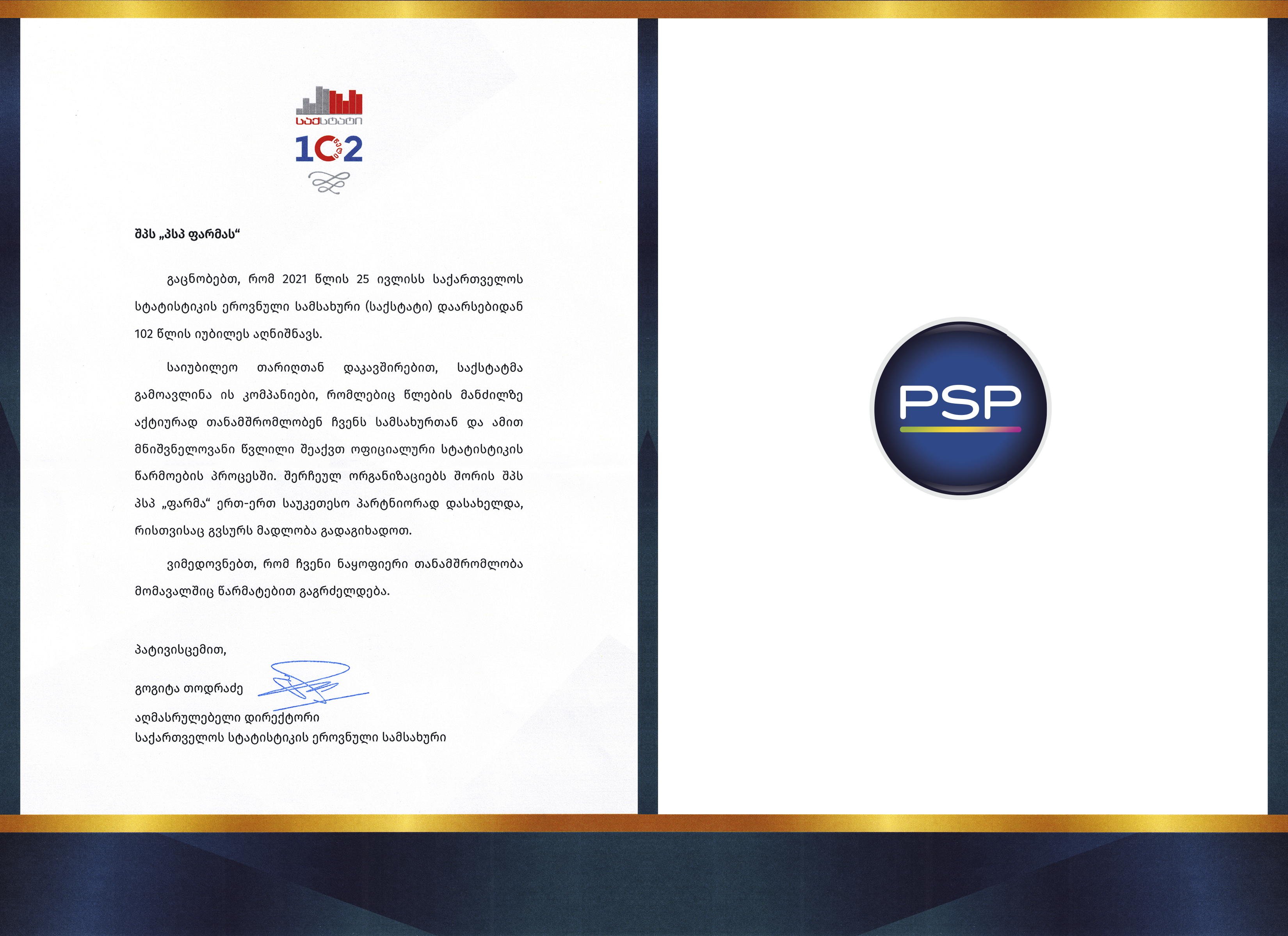 „PSP ფარმა“ „საქსტატმა“ საუკეთესო პარტნიორად დაასახელა