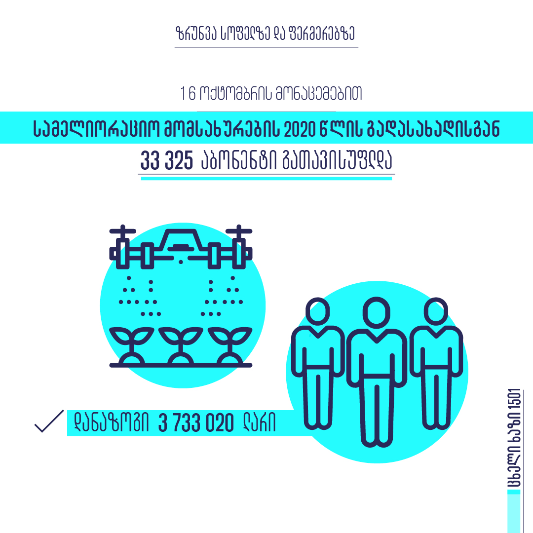 სამელიორაციო მომსახურების 2020 წლის გადასახადისგან 33 325 აბონენტი გათავისუფლდა, დანაზოგმა 3 733 020 ლარი შეადგინა