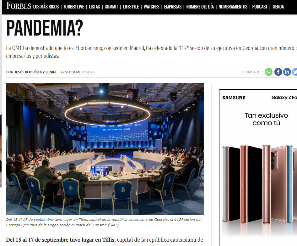 „ფორბსი“ - თბილისში გამართული UNWTO-ს ღონისძიება პანდემიის პერიოდში გამართული პირველი პირისპირ შეხვედრა იყო