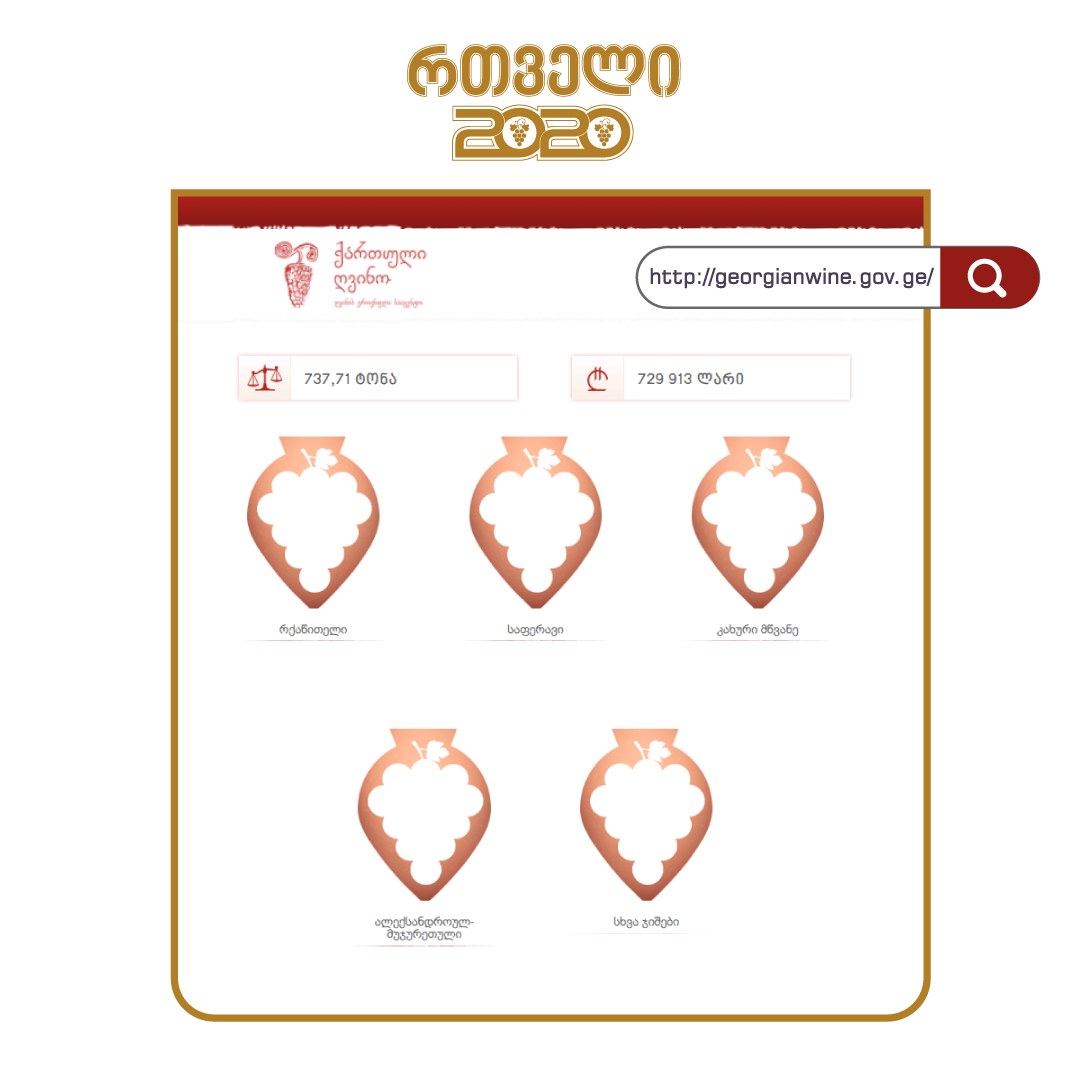31 აგვისტოს მონაცემებით, „რთველი 2020"-ის ფარგლებში, გადამუშავებულია 1200 ტონამდე, სხვადასხვა ჯიშის, ძირითადად საადრეო ყურძენი