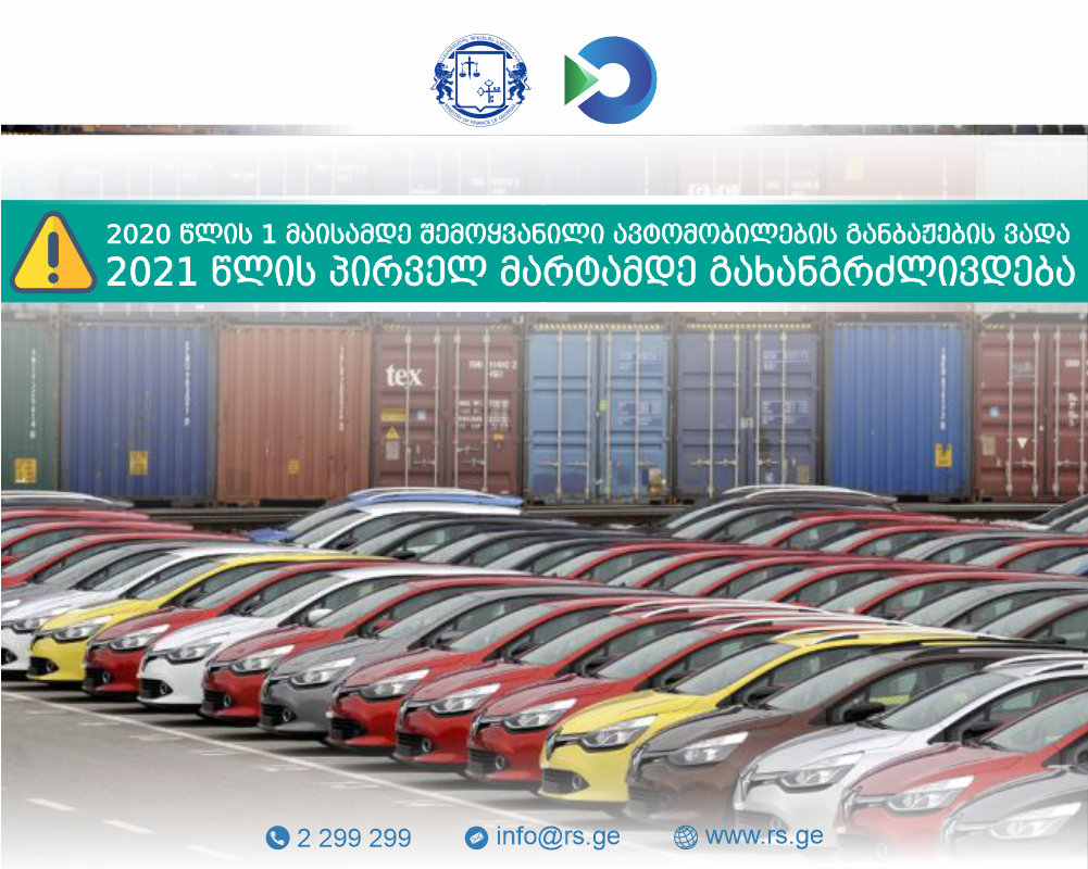 2020 წლის პირველ მაისამდე შემოყვანილი ავტომობილების განბაჟების ვადა 2021 წლის პირველ მარტამდე გახანგრძლივდება