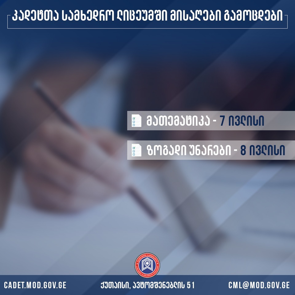 კადეტთა სამხედრო ლიცეუმი მოსწავლეთა მიღებას აცხადებს