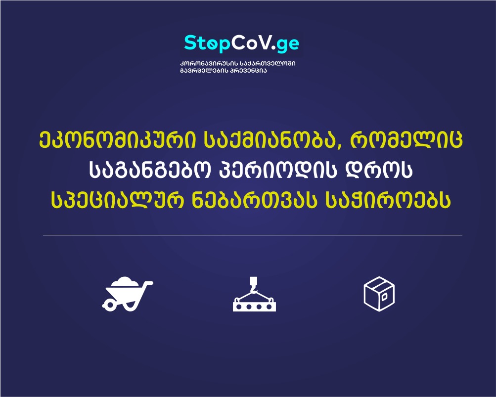 ეკონომიკური საქმიანობა, რომელიც საგანგებო პერიოდის დროს სპეციალურ ნებართვას საჭიროებს