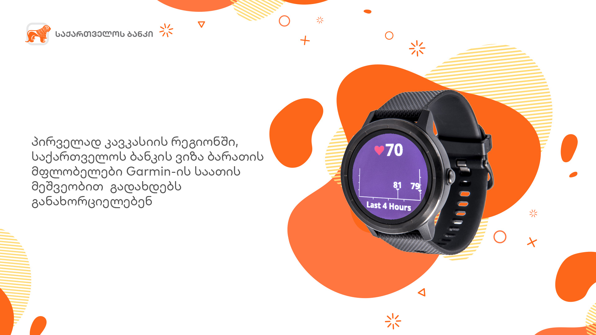 პირველად კავკასიის რეგიონში, „საქართველოს ბანკის“ ვიზა ბარათის მფლობელები Garmin- ის საათის მეშვეობით გადახდებს განახორციელებენ