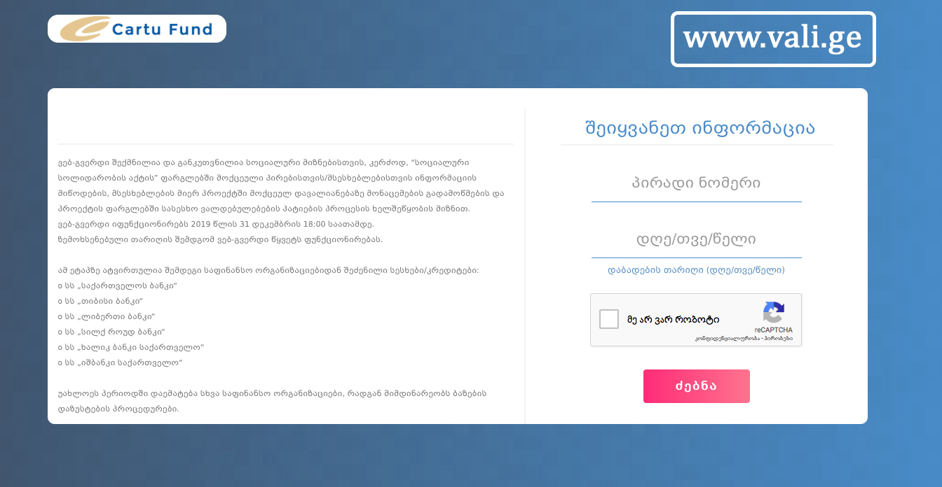 ვებგვერდზე Vali.ge ამ დროისთვის 407 ათასზე მეტი მსესხებლის შესახებ ინფორმაციაა ატვირთული