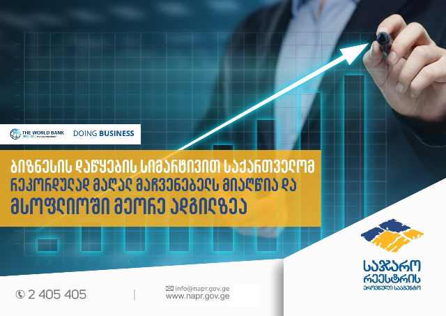 ბიზნესის დაწყების სიმარტივით საქართველომ რეკორდულად მაღალ მაჩვენებელს მიაღწია და მსოფლიო რეიტინგში მეორე ადგილზეა