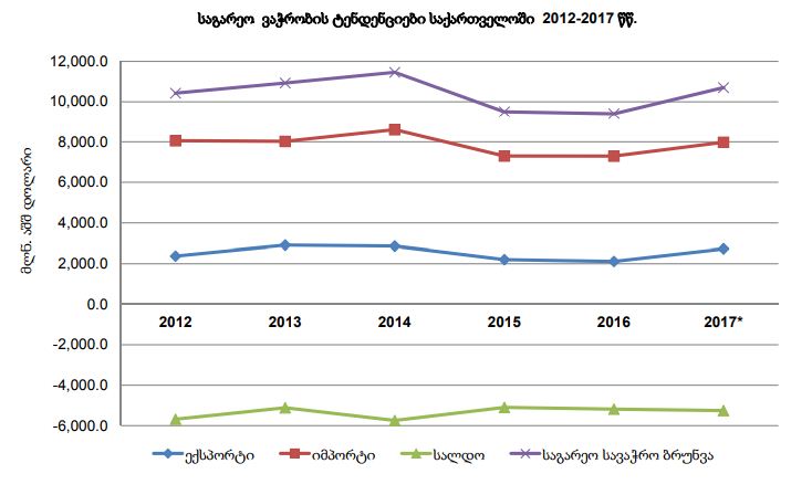 2017 წელს, საქონლით საგარეო სავაჭრო ბრუნვა 13.8%-ით გაიზარდა