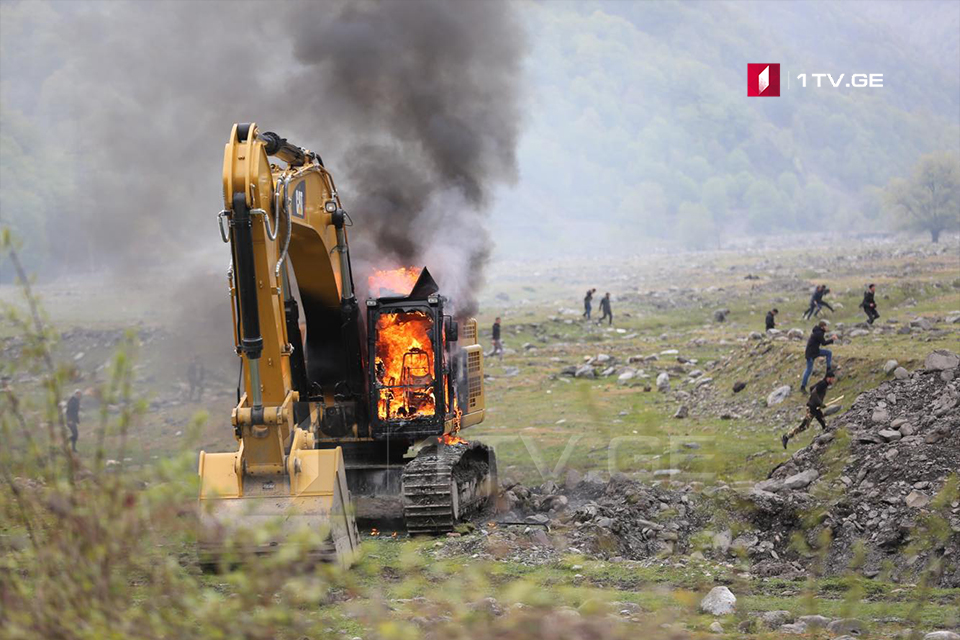 პანკისში ადგილობრივმა მოსახლეობამ სამშენებლო ტექნიკას და პოლიციის მანქანას ცეცხლი წაუკიდა