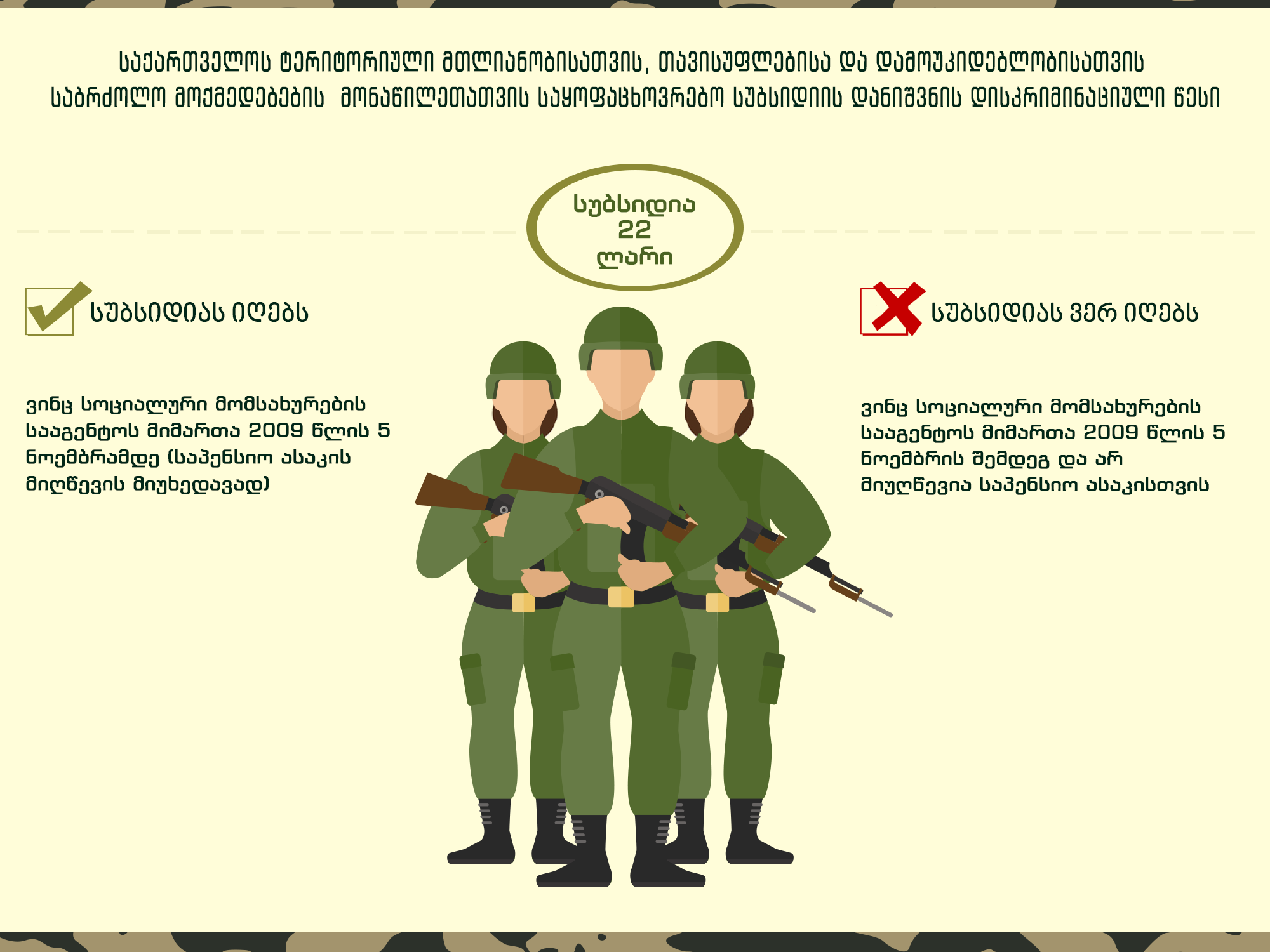 ომბუდსმენი ტერიტორიული მთლიანობისთვის მებრძოლთათვის საყოფაცხოვრებო სუბსიდიის დანიშვნის წესს დისკრიმინაციულად მიიჩნევს