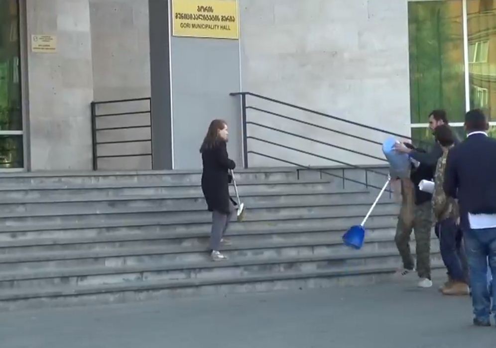 გორის მერიის ადმინისტრაციის უფროსმა გიგა მაქარაშვილს ნაგვით სავსე ურნა თავზე ჩამოამხო [ვიდეო]
