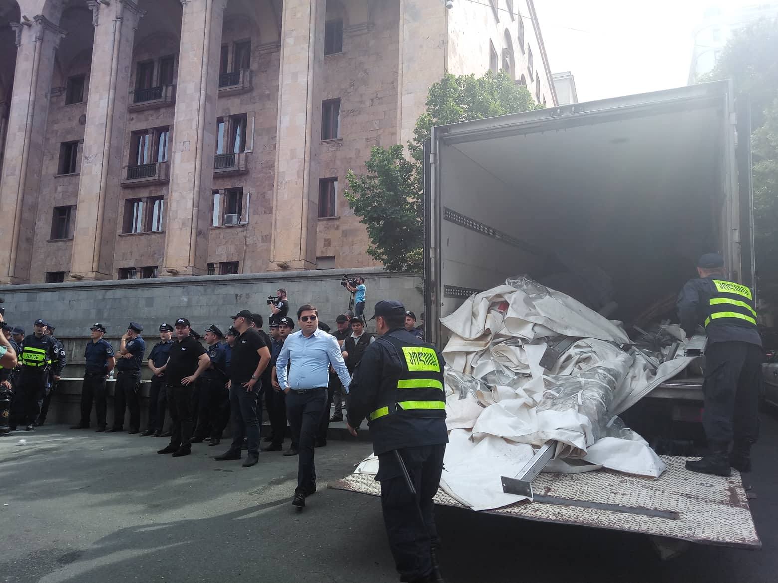 სამართალდამცველებმა პარლამენტთან განთავსებული კარვები აიღეს