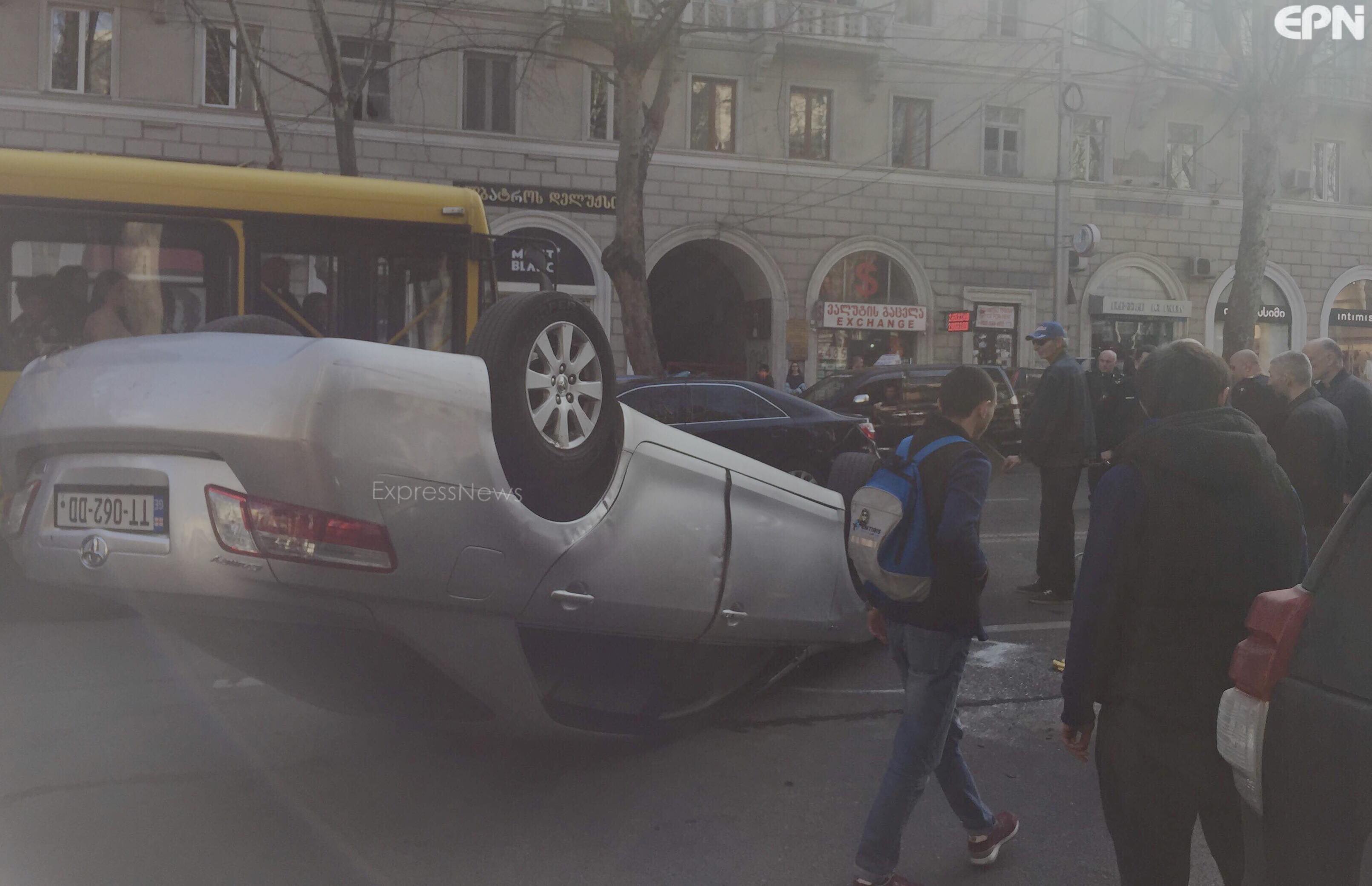 ჭავჭავაძის გამზირზე მსუბუქი ავტომობილი გადაბრუნდა - დაშავდა 2 ადამიანი