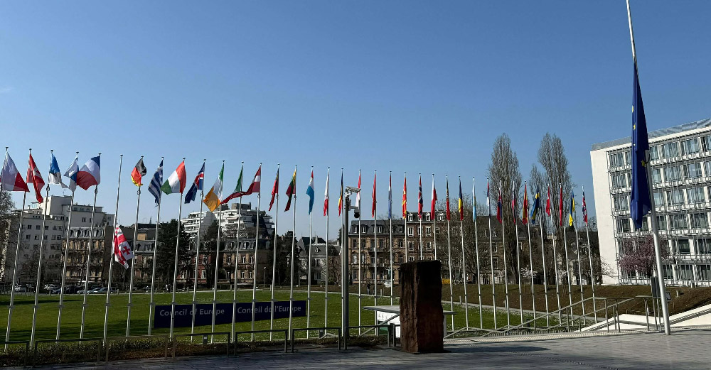 ილია II-ის ხსოვნის პატივსაცემად, სტრასბურგში, ევროპის სასახლესთან ევროპისა და საქართველოს დროშები დაეშვა