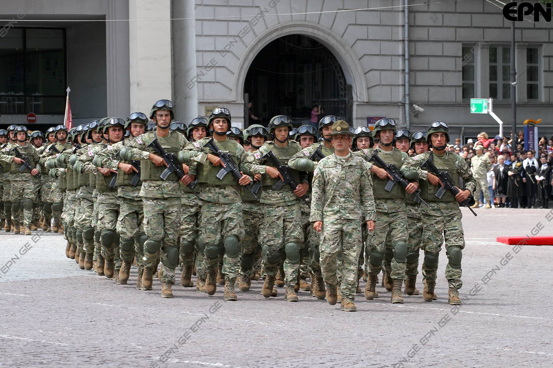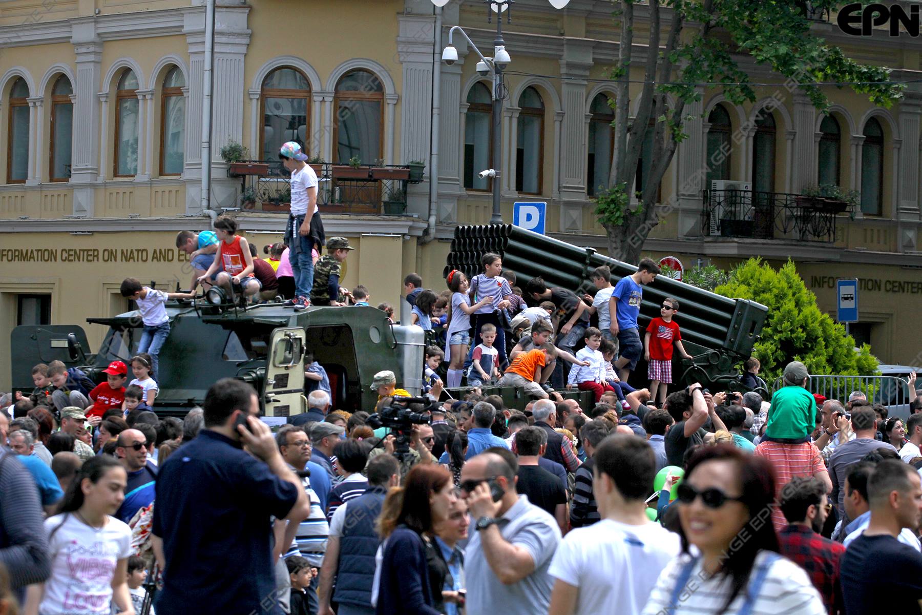 თავისუფლების მოედანზე სხვადასხვა სამხედრო ტექნიკა, მათ შორის „ჯაველინებია“ გამოფენილი