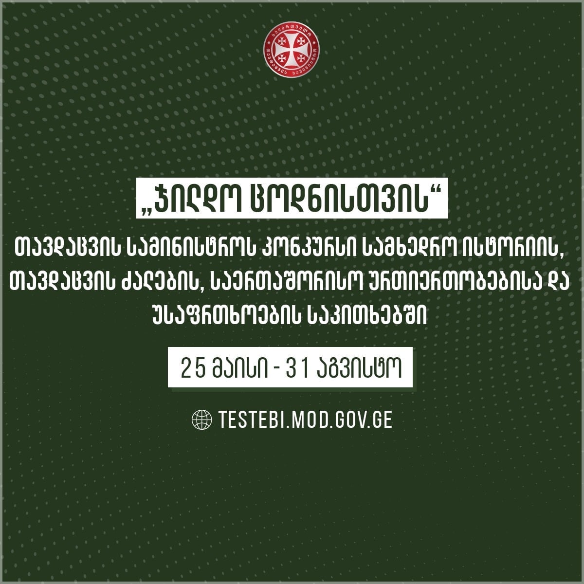 საქართველოს თავდაცვის სამინისტრო, ონლაინ კონკურსს „ჯილდო ცოდნისთვის“ აგრძელებს
