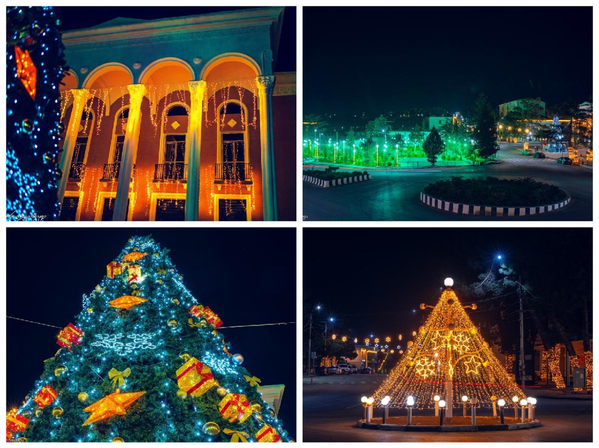 ქალაქის ახლად რეაბილიტირებული ცენტრი, ქუჩები, სკვერები და სხვადასხვა ლოკაციები მორთულია საახალწლოდ. ასე გამოიყურება ქალაქი დღეს: