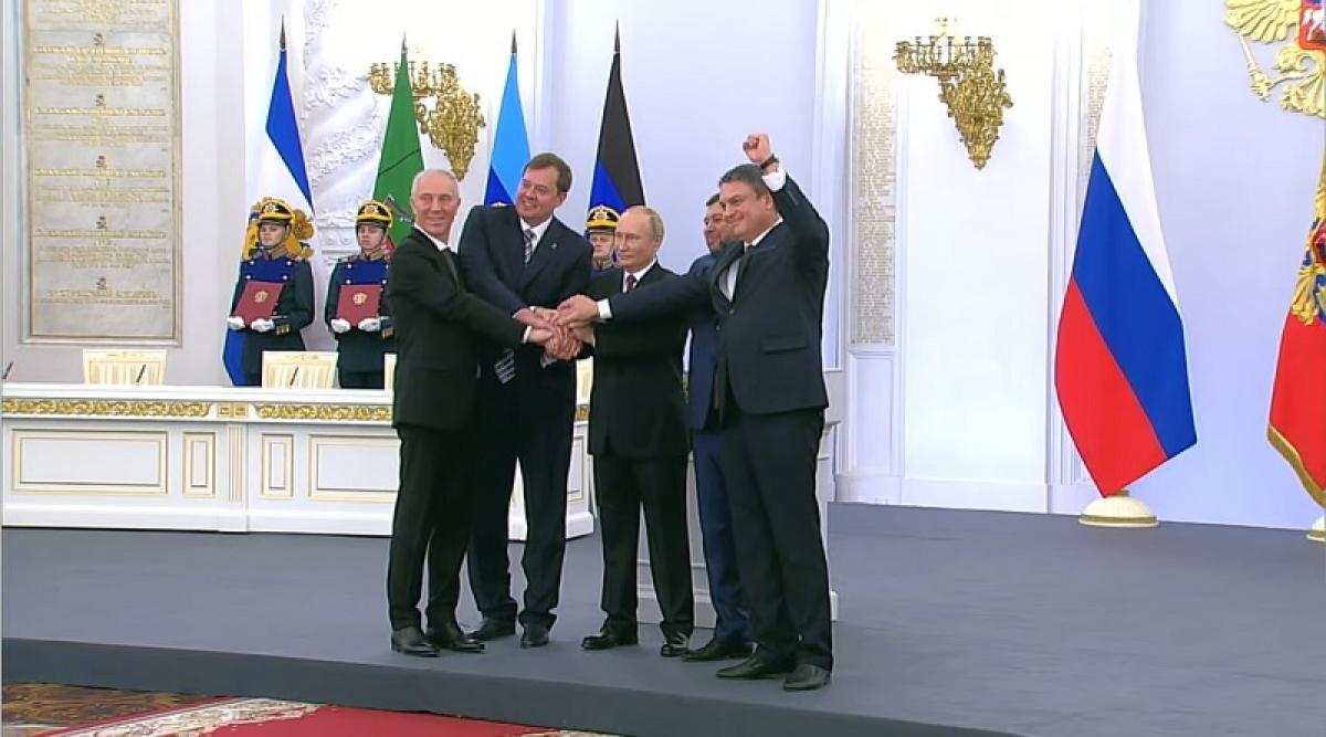 30 სექტემბერს, ვლადიმერ პუტინმა უკრაინის 4 რეგიონის - დონეცკის, ლუგანსკის, ზაპოროჟიესა და ხერსონის ანექსიას მოაწერა ხელი. კრემლში ოფიციალური ცერემონიის გამართვას წინ ოთხივე რეგიონში ე.წ. რეფერენდუმების ჩატარება უძღოდა. 23-27 სექტემბერს გამართულ „რეფერენდუმებს“ უკრაინამ და დასავლეთმა უკანონო უწოდეს და მისი შედეგები არ აღიარეს. მოლაპარაკებები რუსეთის მიერ უკრაინაში სრულმასშტაბიანი ომის დაწყების შემდეგ, ორ ქვეყანას შორის მოლაპარაკების რამდენიმე უშედეგო რაუნდი გაიმართა. მას შემდეგ, რაც რუსეთის პრეზიდენტმა უკრაინის ოთხი ოკუპირებული რეგიონის ანექსიის შესახებ განკარგულებას მოაწერა ხელი, ვლადიმერ პუტინმა კრემლში გამართულ ცერემონიაზე, უკრაინელებს მოლაპარაკების მაგიდასთან დასხდომისკენ მოუწოდა. პუტინმა მაშინ განმარტა, რომ ორმხრივი მოლაპარაკების შემთხვევაში, რუსეთი უკრაინასთან მის შემადგენლობაში შესული ტერიტორიების შესახებ აღარ ისაუბრებდა, რადგან ხალხმა "თავისი არჩევანი უკვე გააკეთა".
