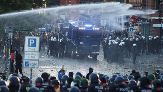 ჰამბურგში „დიდი ოცეულის“ სამიტის დაწყებამდე საპროტესტო აქციაზე 76 სამართალდამცველი დაშავდა (ფოტო)