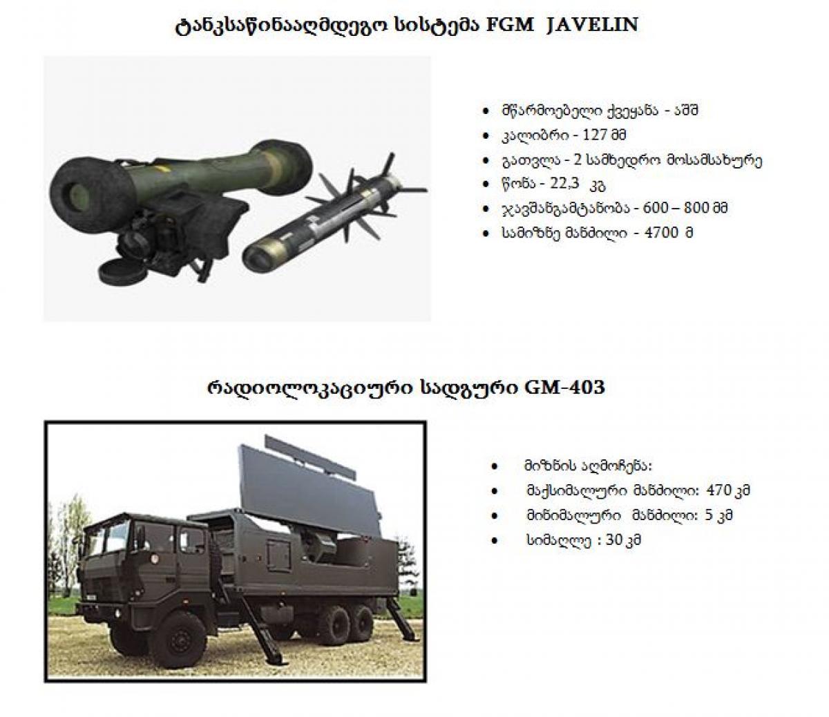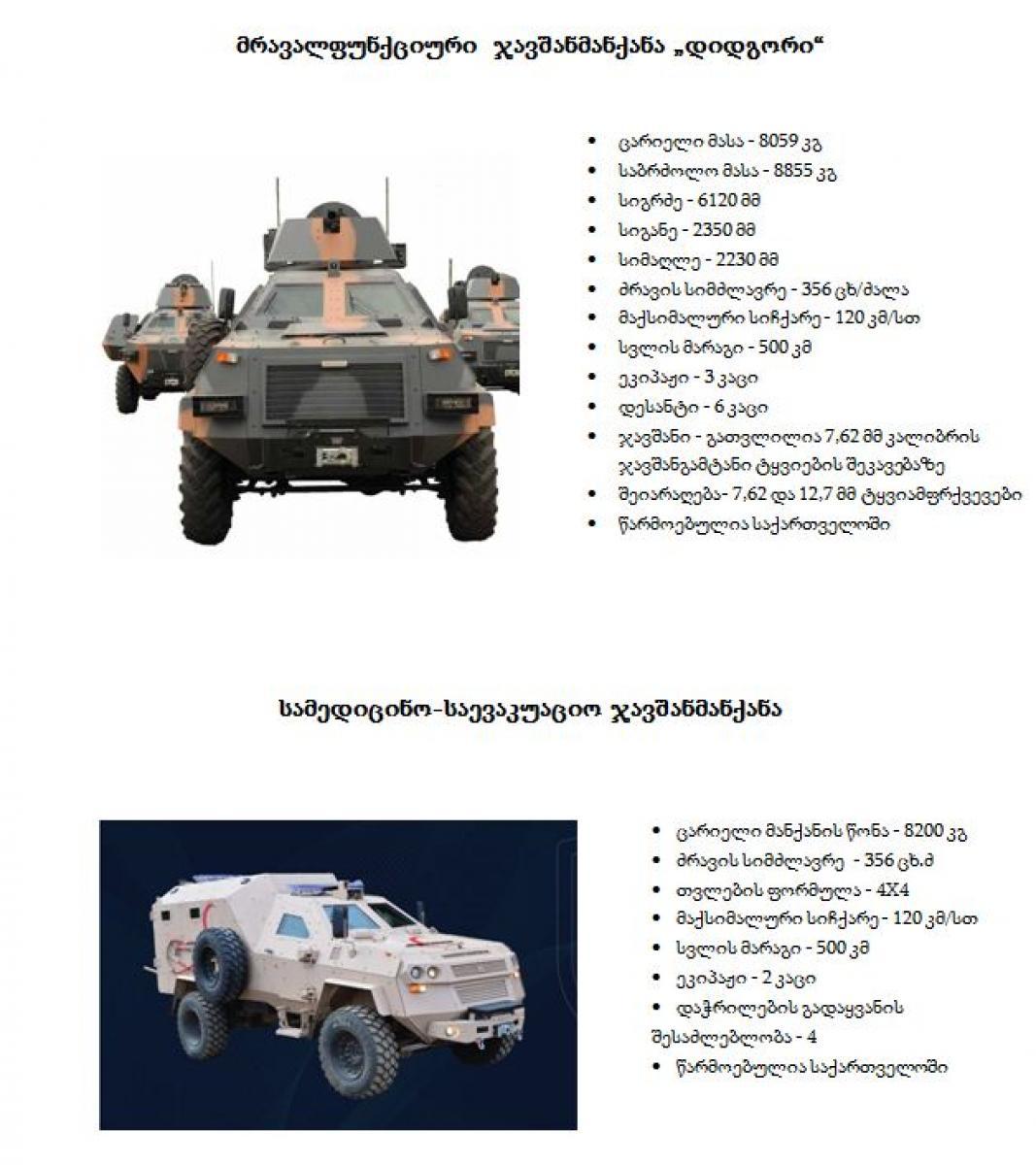 თავისუფლების მოედანზე წარმოდგენილი სამხედრო ტექნიკის ტაქტიკურ-ტექნიკური მახასიათებლები